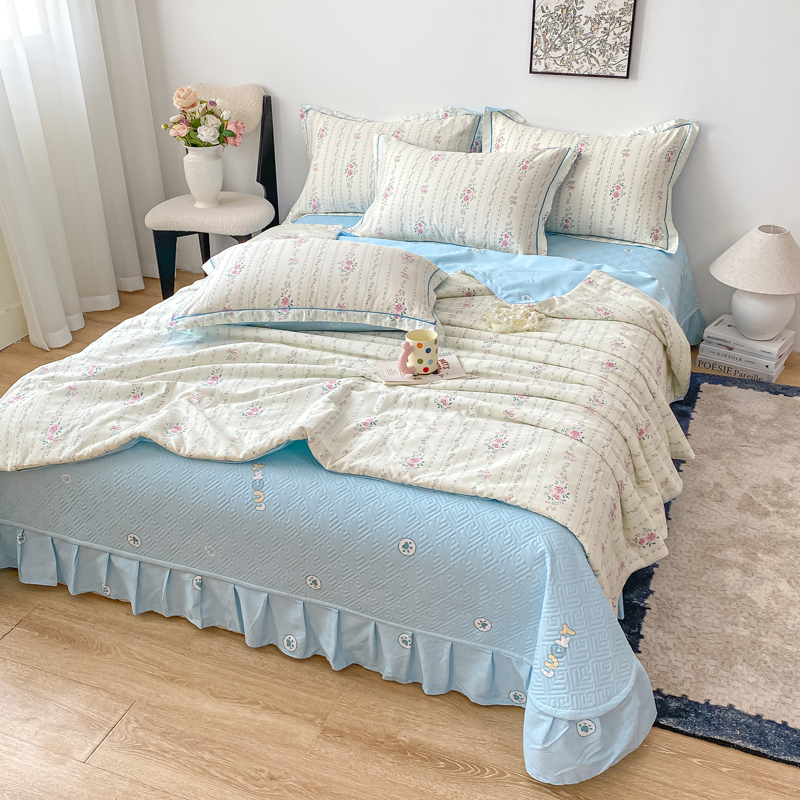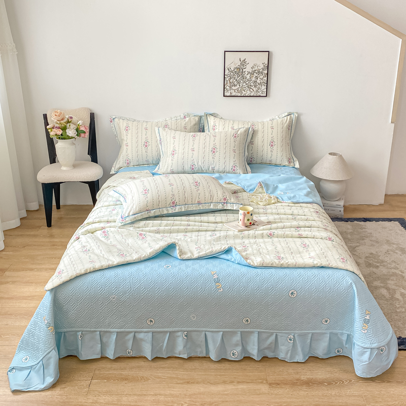 富之航家纺 2025新款全棉印花床盖四件套 蓝屿絮