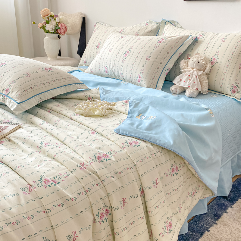 (总)富之航家纺 2024爆款公主风床盖四件套新款小清新提花针织棉床盖四件套,蝶恋花咖,比心,饼干熊,芙蔓,复苏,格调,剪秋,蓝图,梦蝶,蜜桃,莫吉,清欢,素漫,雾里花,相思兰,玉隐