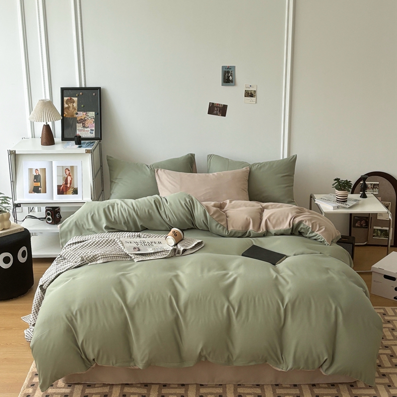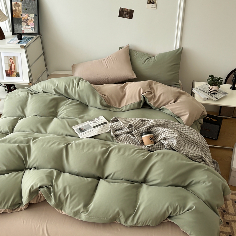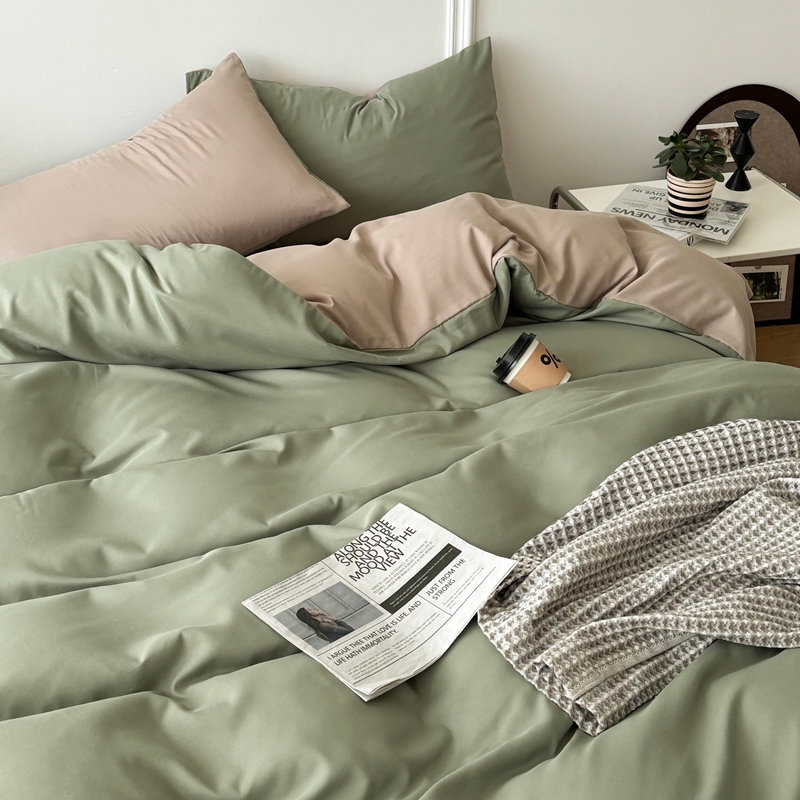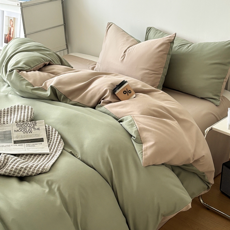 商品名称:百花王 2025新款亲肤舒适简约纯色水洗棉四件套 抹茶卡其