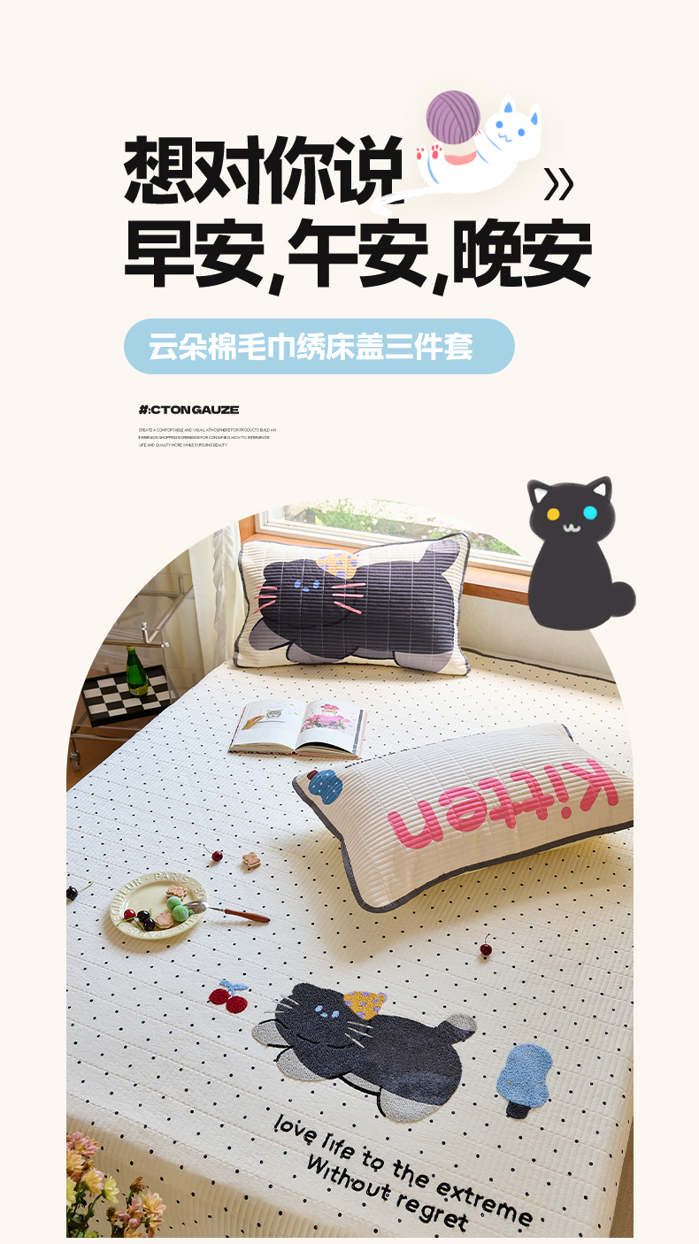 当前位置: 91家纺网 > 商品网购 > 床品套件 > 三件套 > 鑫喜莱家纺 2025新款毛巾绣云朵棉床盖三件套 组合图仅供展示