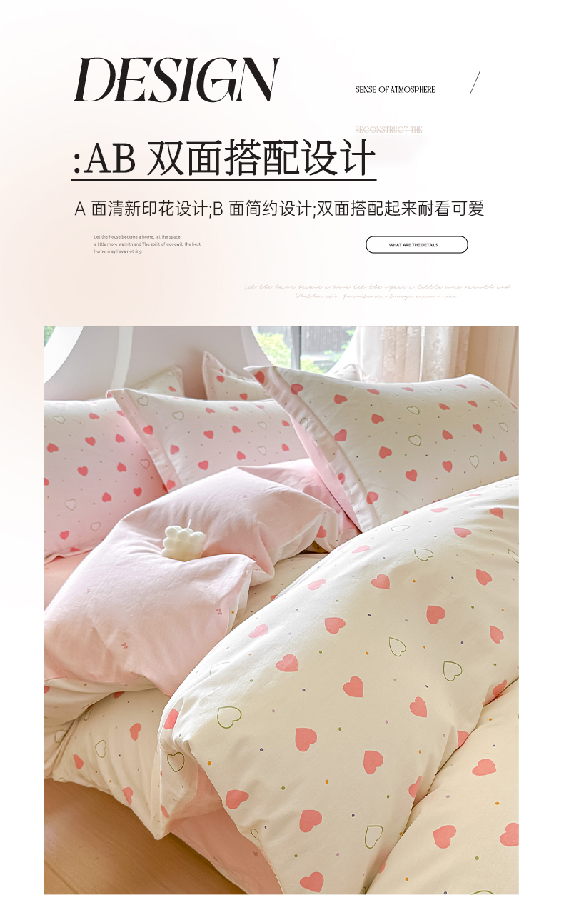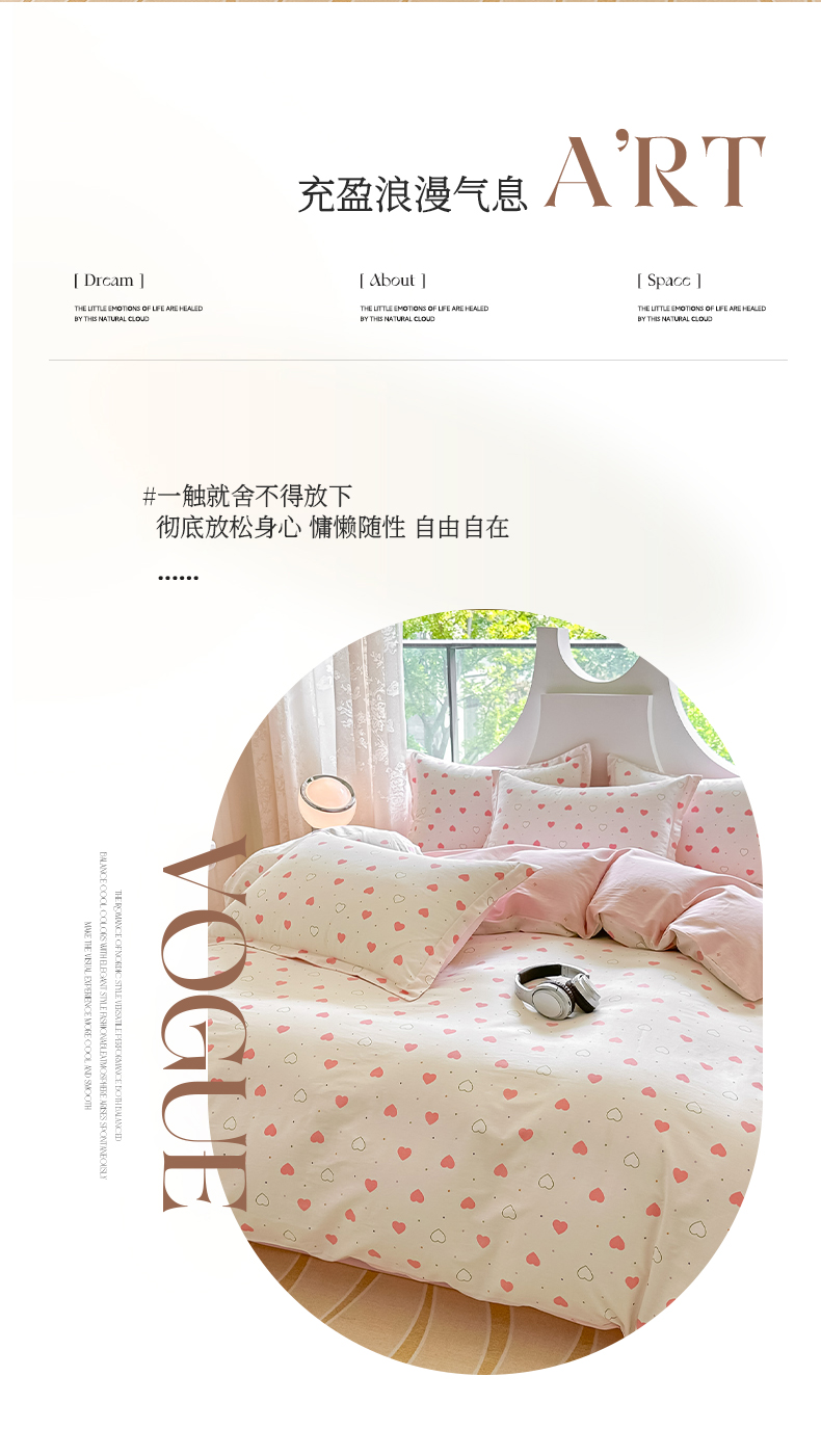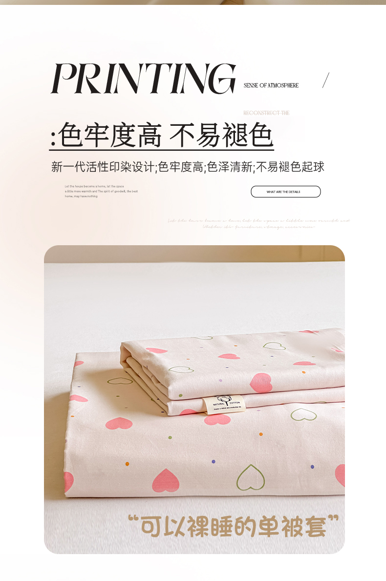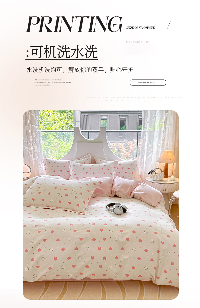 商品名称:芙绣家纺 2025新款A类全棉小清新印花单被套单枕套学生单品系列 爱心粉