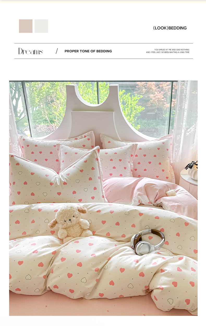 芙绣家纺 2025新款A类全棉小清新印花单被套单枕套学生单品系列 爱心粉