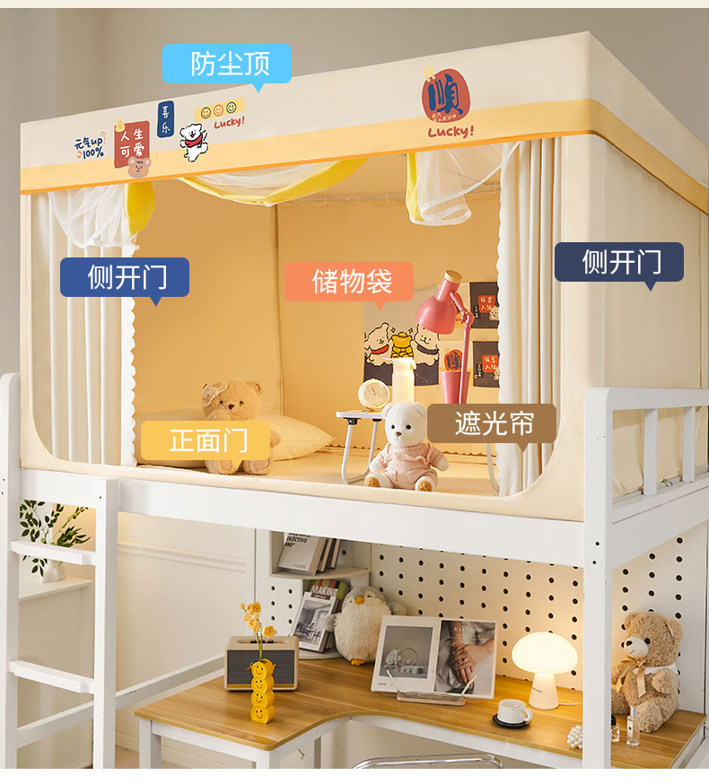 商品名称:水妙家纺 2025新款加厚强遮光蚊账学生宿舍上下铺130克斜纹加厚床帘蚊账 暴富发财