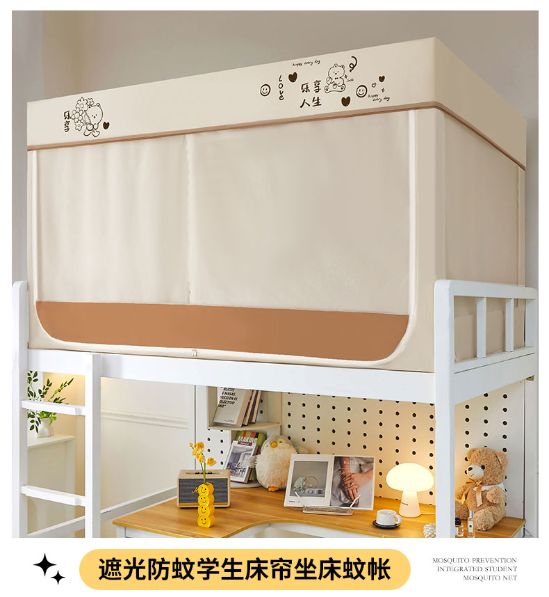 水妙家纺 2025新款加厚强遮光蚊账学生宿舍上下铺130克斜纹加厚床帘蚊账 暴富发财