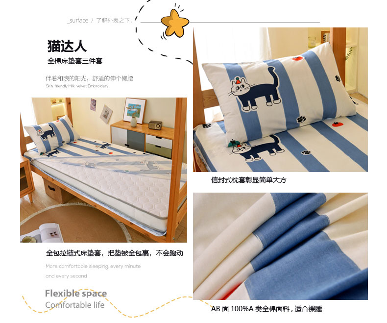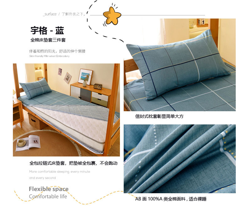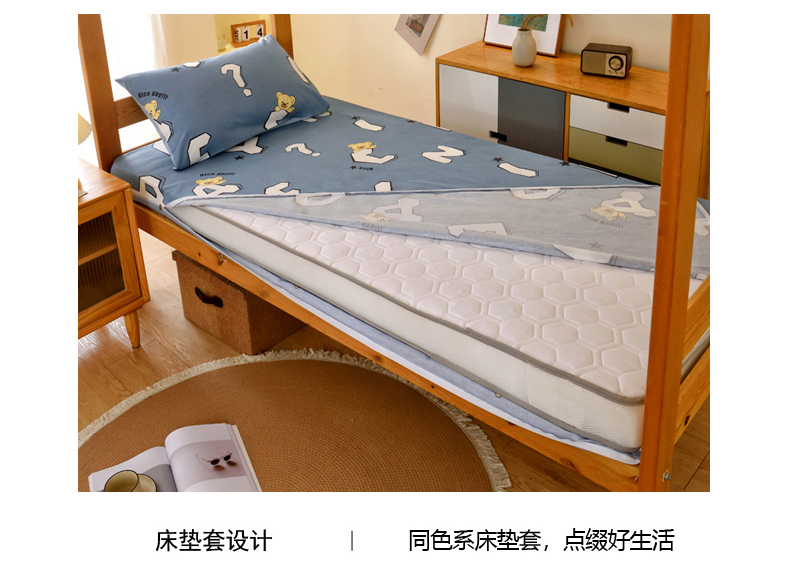 (总)水妙家纺 2025年新款A类全棉纯棉学生宿舍上下铺床垫套六件套三件套,床垫套安德鲁-蓝,床垫套布格熊-蓝,床垫套玛奇朵-灰,床垫套猫达人,床垫套念初-蓝,床垫套星耀皇冠-灰,床垫套宇格-蓝
