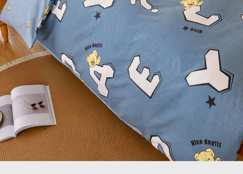 商品名称:水妙家纺 2025新款A类全棉拉链床垫套三件套纯棉学生上下铺全包床垫保护套三件套 可订制 床垫套布格熊-蓝