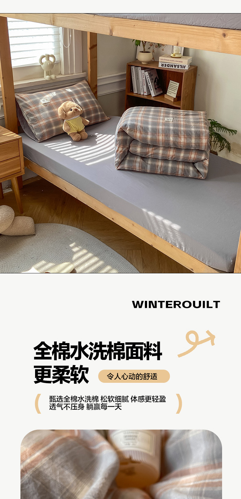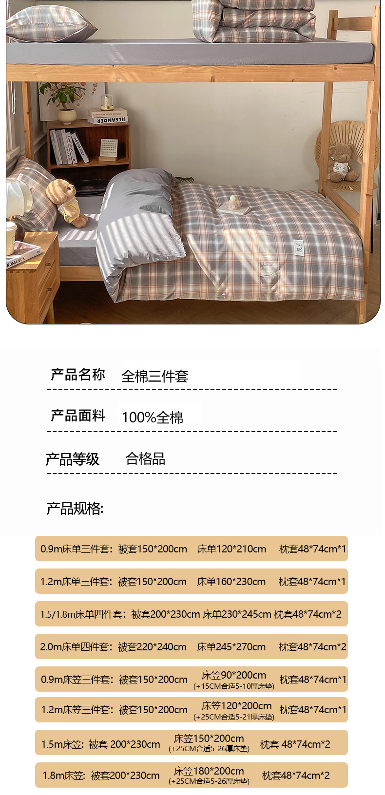 当前位置: 91家纺网 > 商品网购 > 床品套件 > 四件套 > 全棉普通四件套 > 恋人优选 2025新款全棉纯棉水洗棉(AB版)学生宿舍上下铺三件套-有标款 诺卡(浅灰)