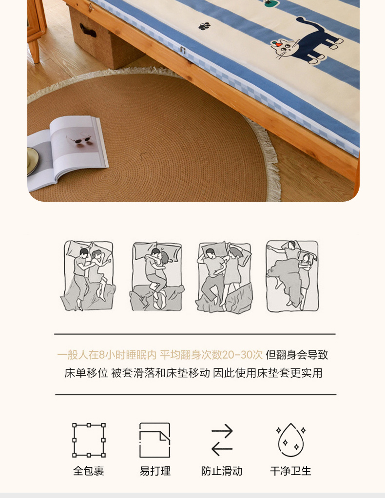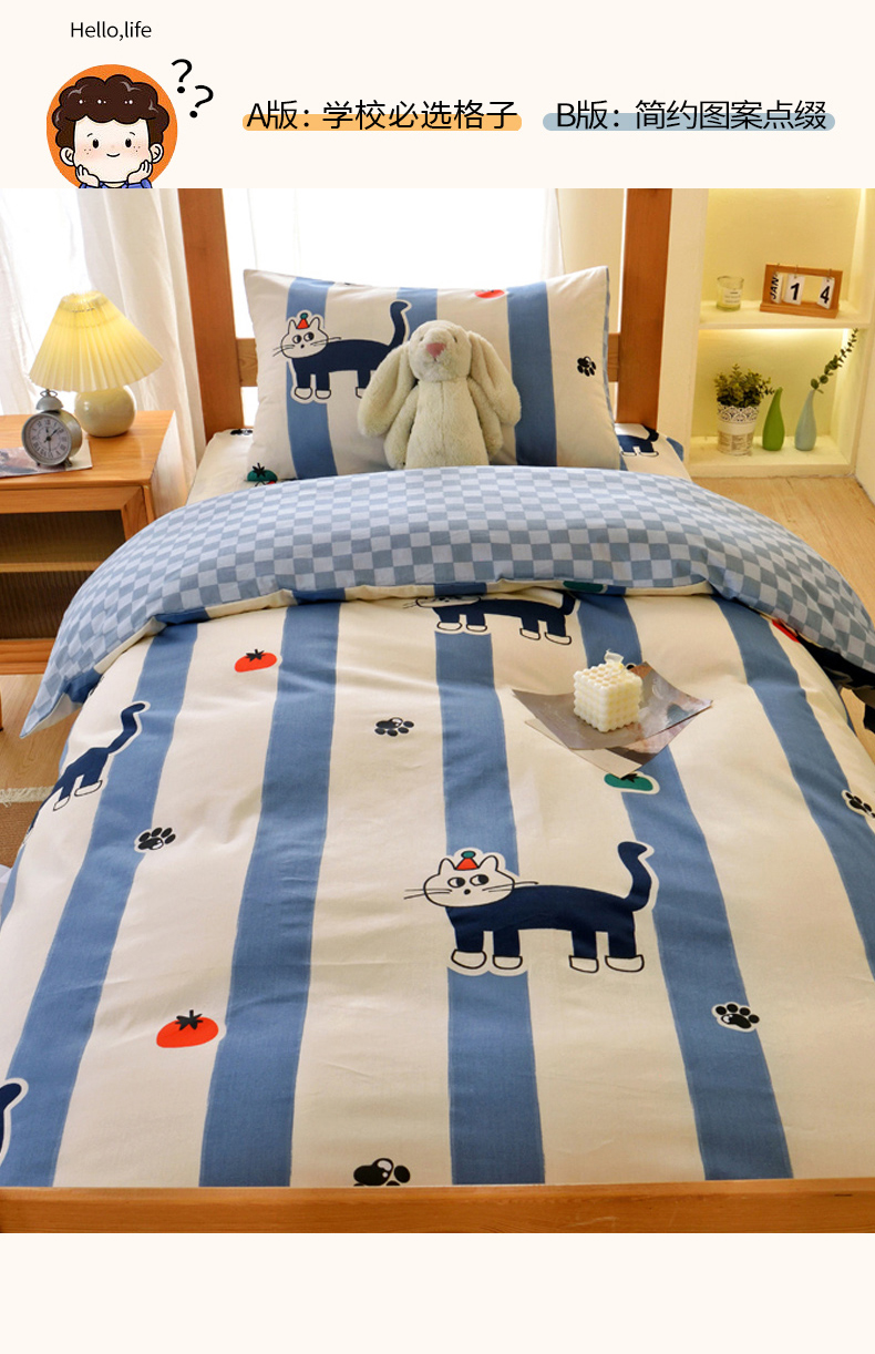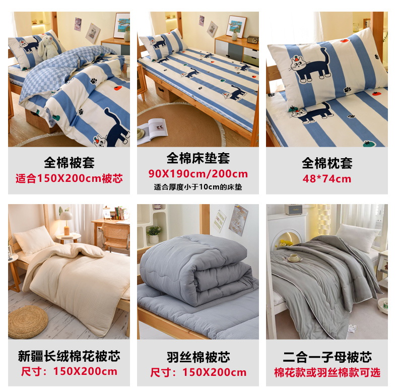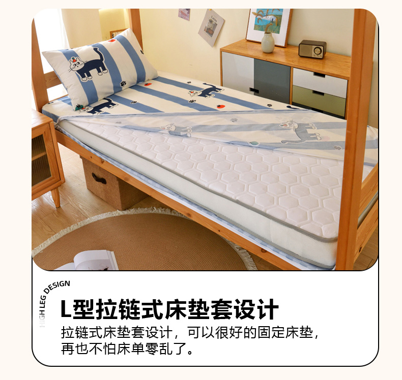 当前位置: 91家纺网 > 商品网购 > 床垫/床褥 > 普通床垫 > 水妙家纺 2025年新款A类全棉纯棉学生宿舍上下铺床垫套六件套三件套 床垫套猫达人