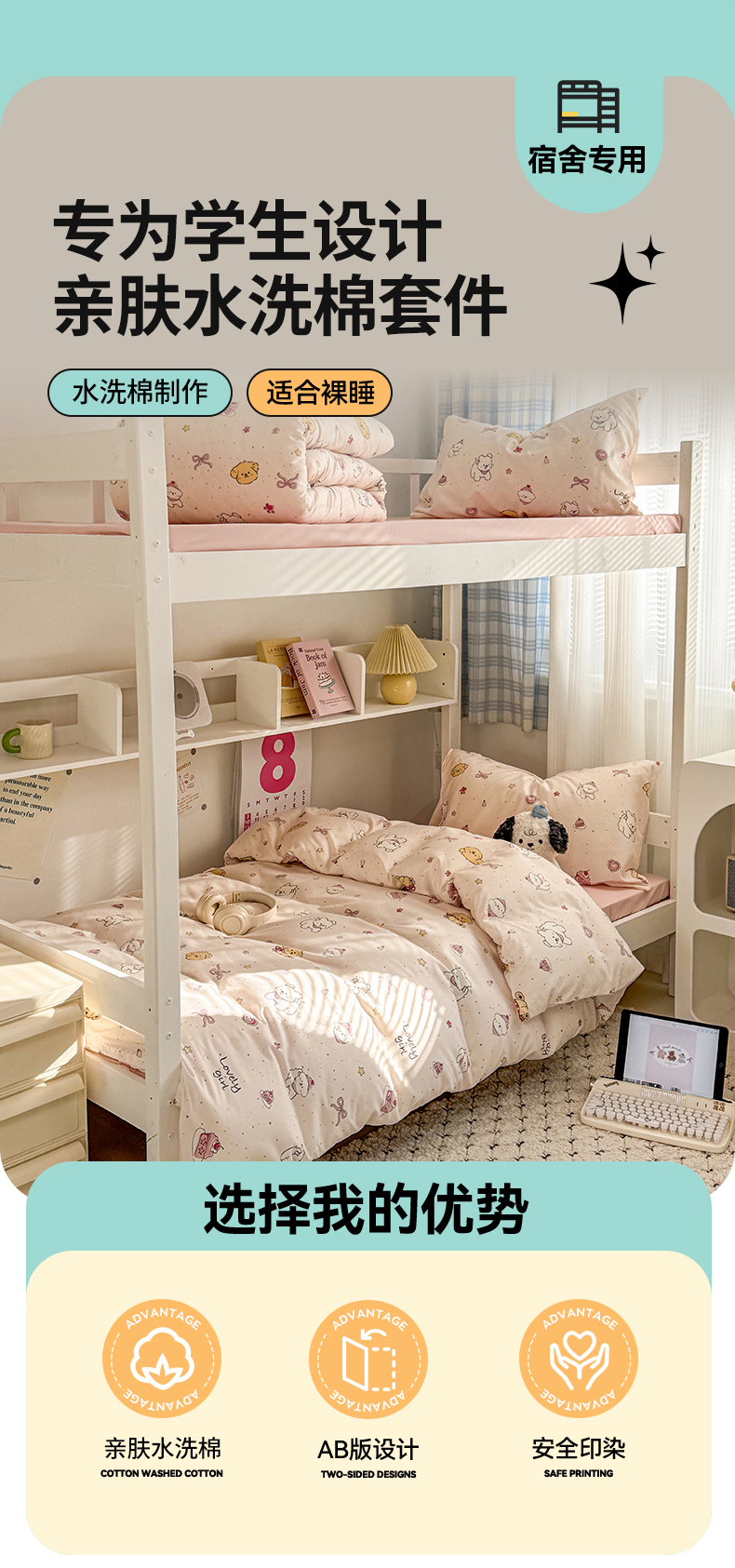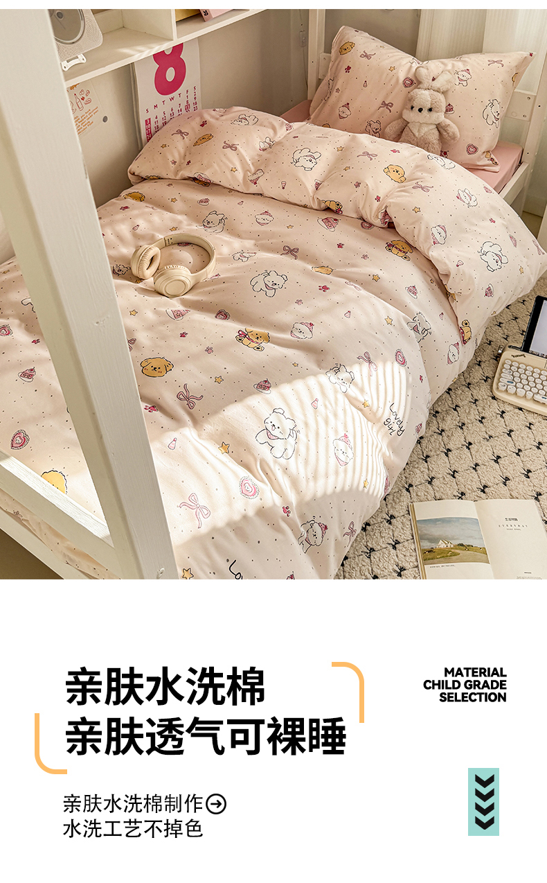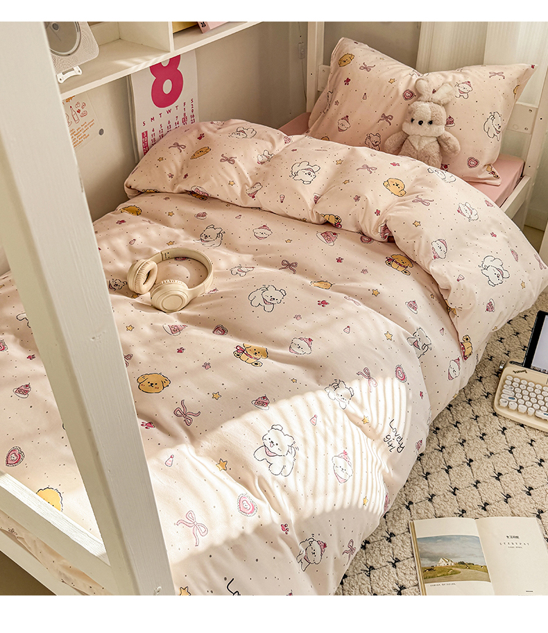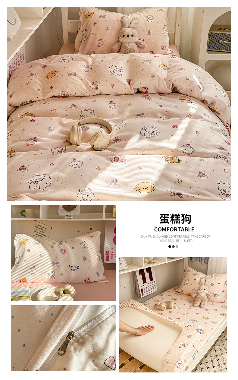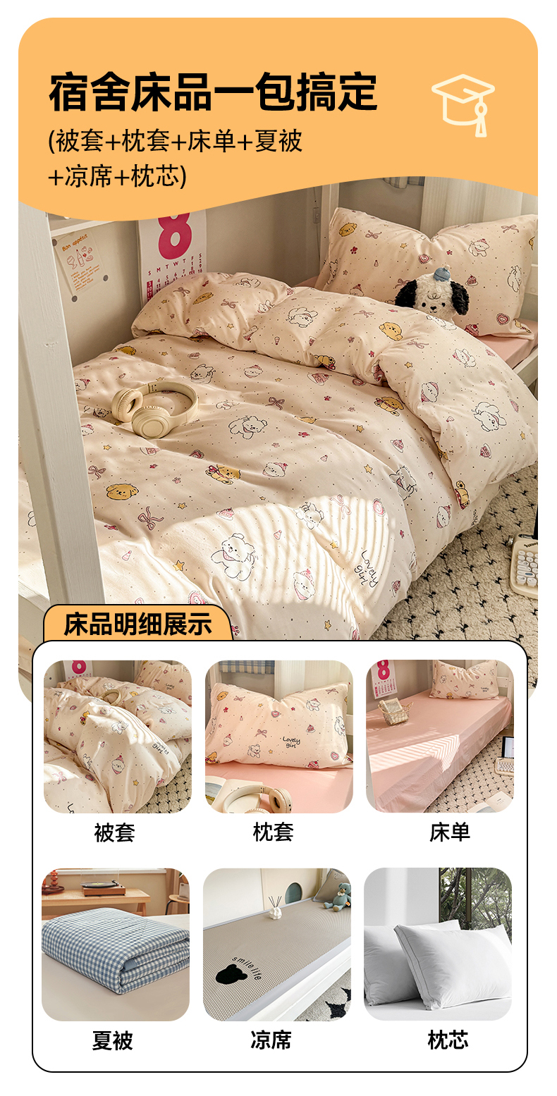 当前位置: 91家纺网 > 商品网购 > 床品套件 > 三件套 > 多品家纺 2025新款水洗棉学生宿舍上下铺大礼包三件套六件套 蛋糕狗