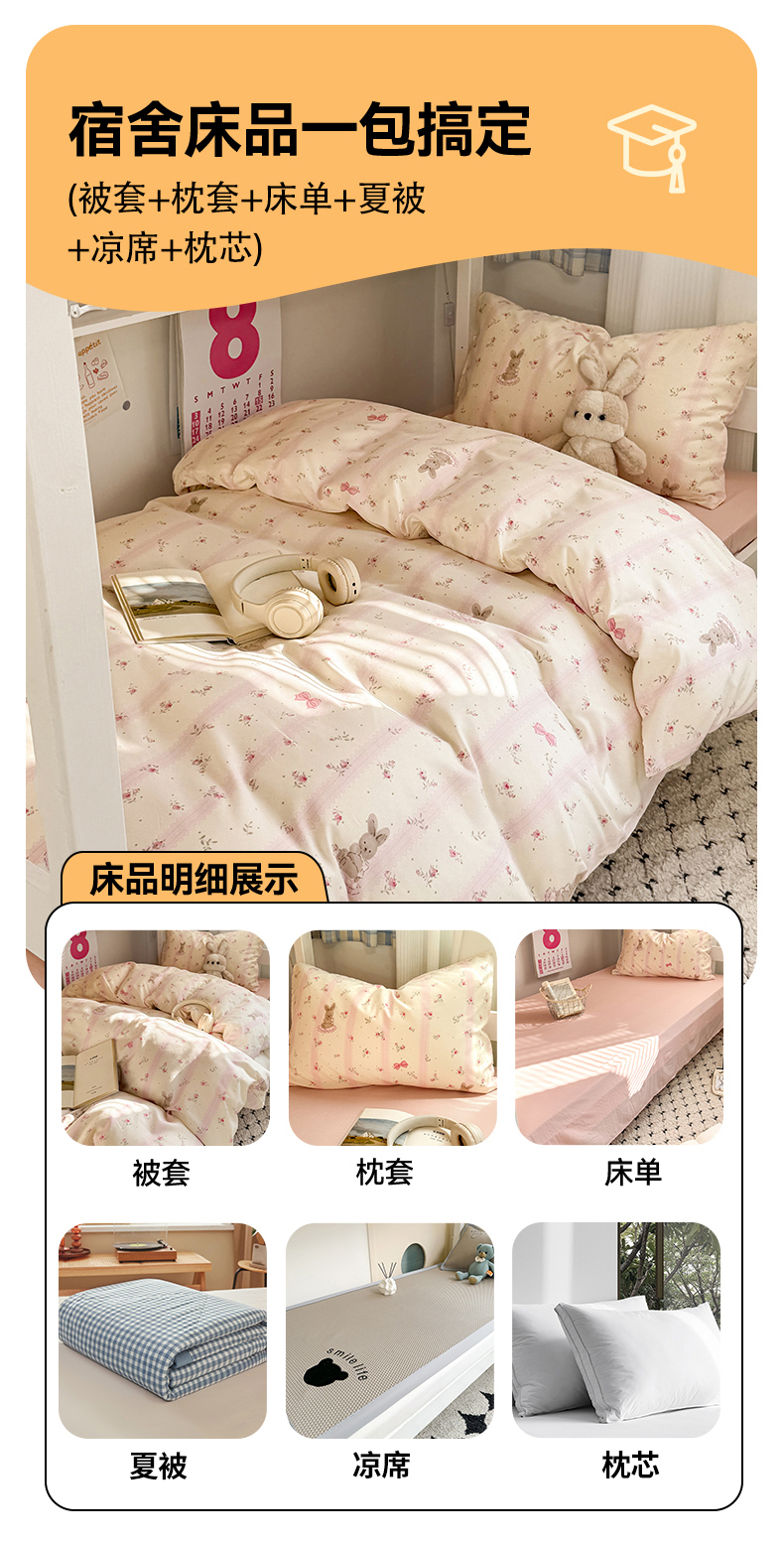 当前位置: 91家纺网 > 商品网购 > 床品套件 > 三件套 > 多品家纺 2025新款水洗棉学生宿舍上下铺大礼包三件套六件套 小兔斑比