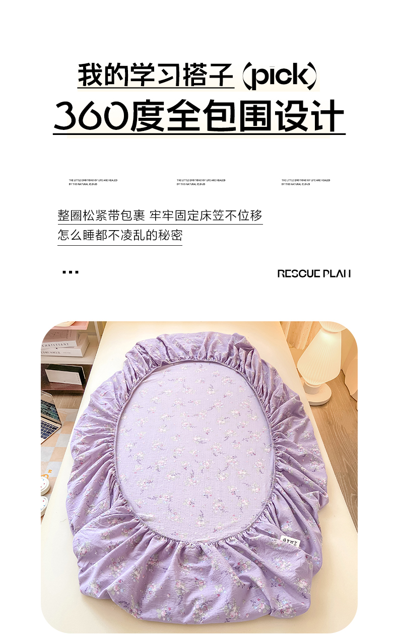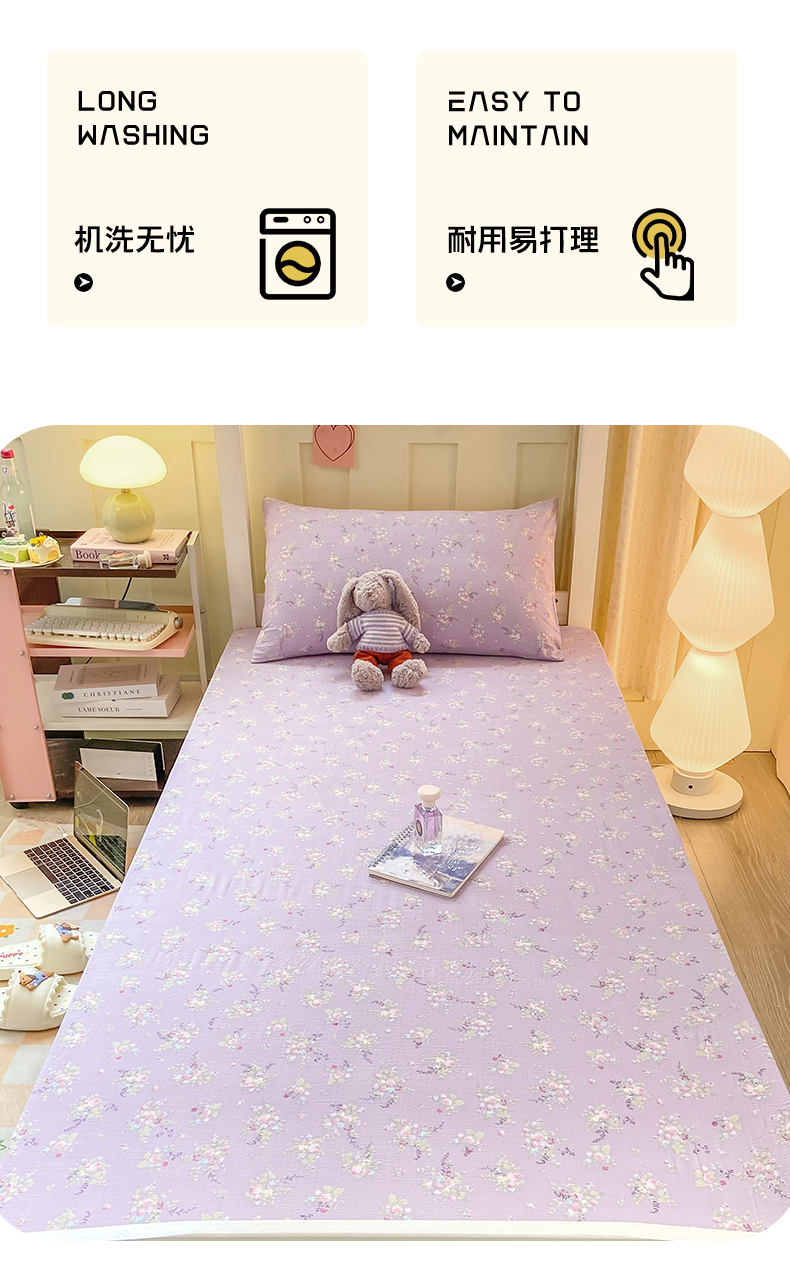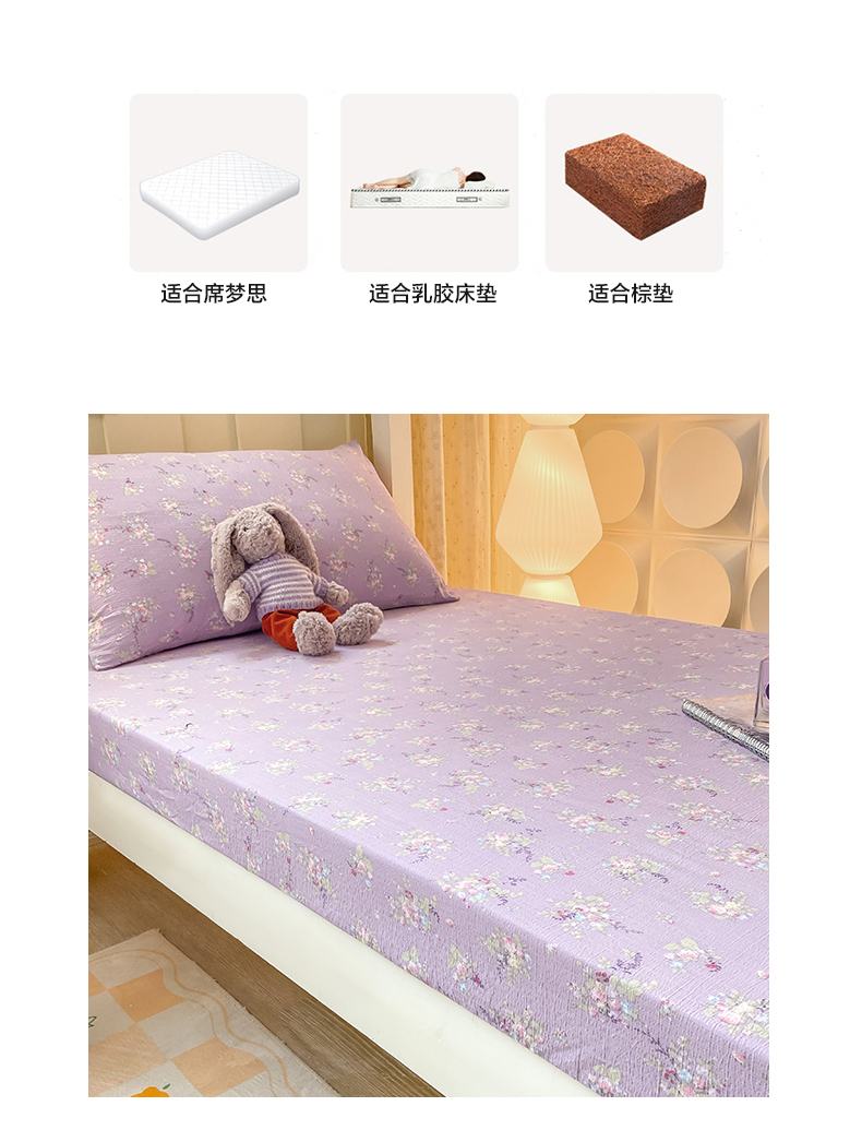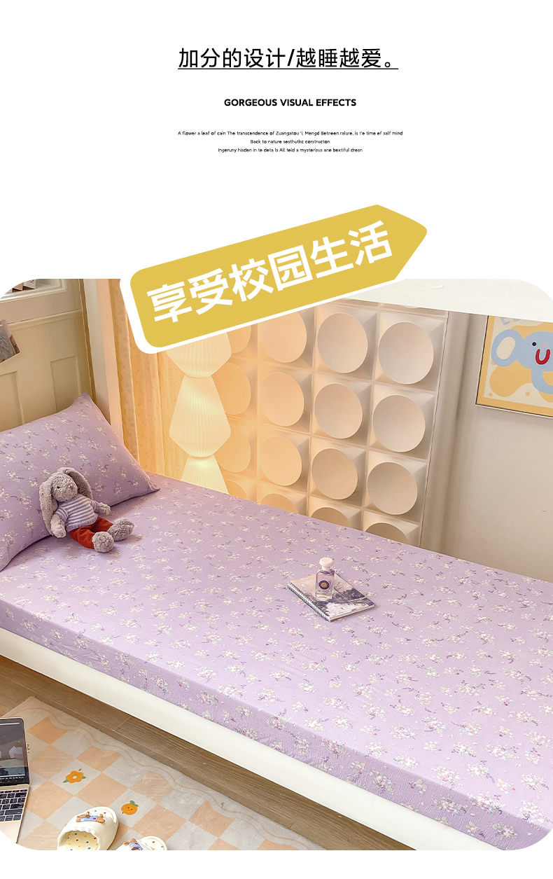• 91家纺网 家纺一手货源 找家纺 眠势力 2025新款ins云感双层纱学生宿舍上下铺奶油风云感四季款单床笠床笠单件 紫色花海