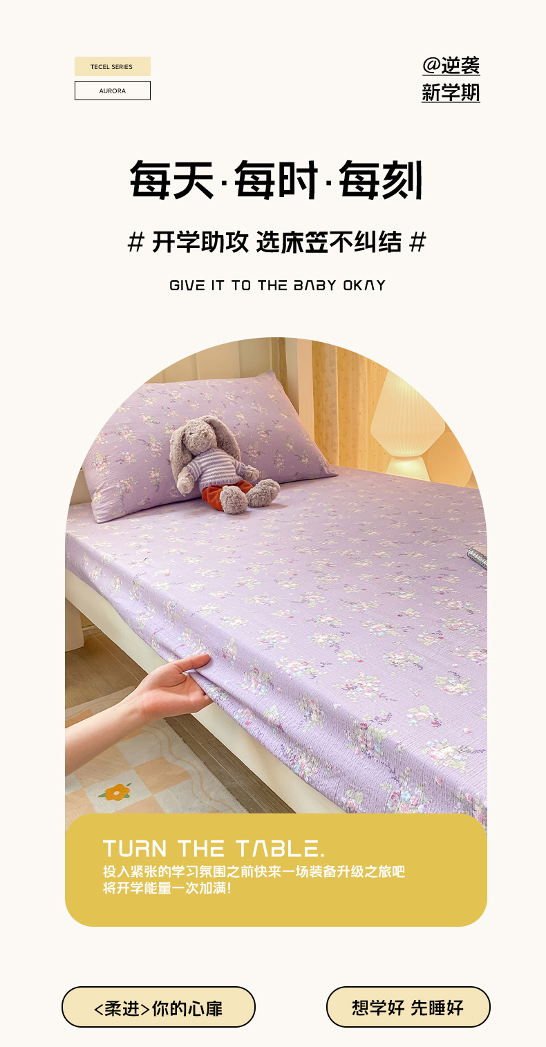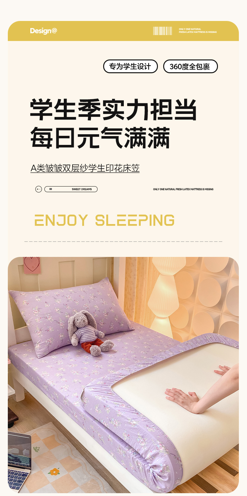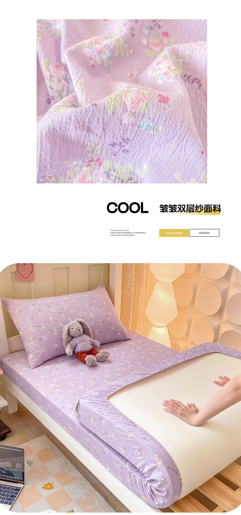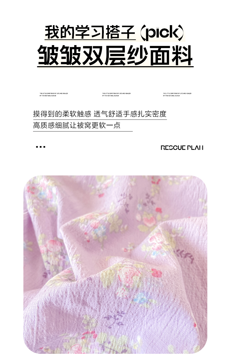 • 91家纺网 家纺一手货源 找家纺 眠势力 2025新款ins云感双层纱学生宿舍上下铺奶油风云感四季款单床笠床笠单件 紫色花海
