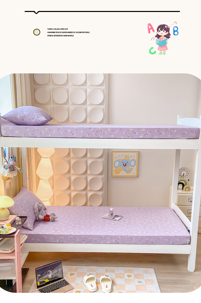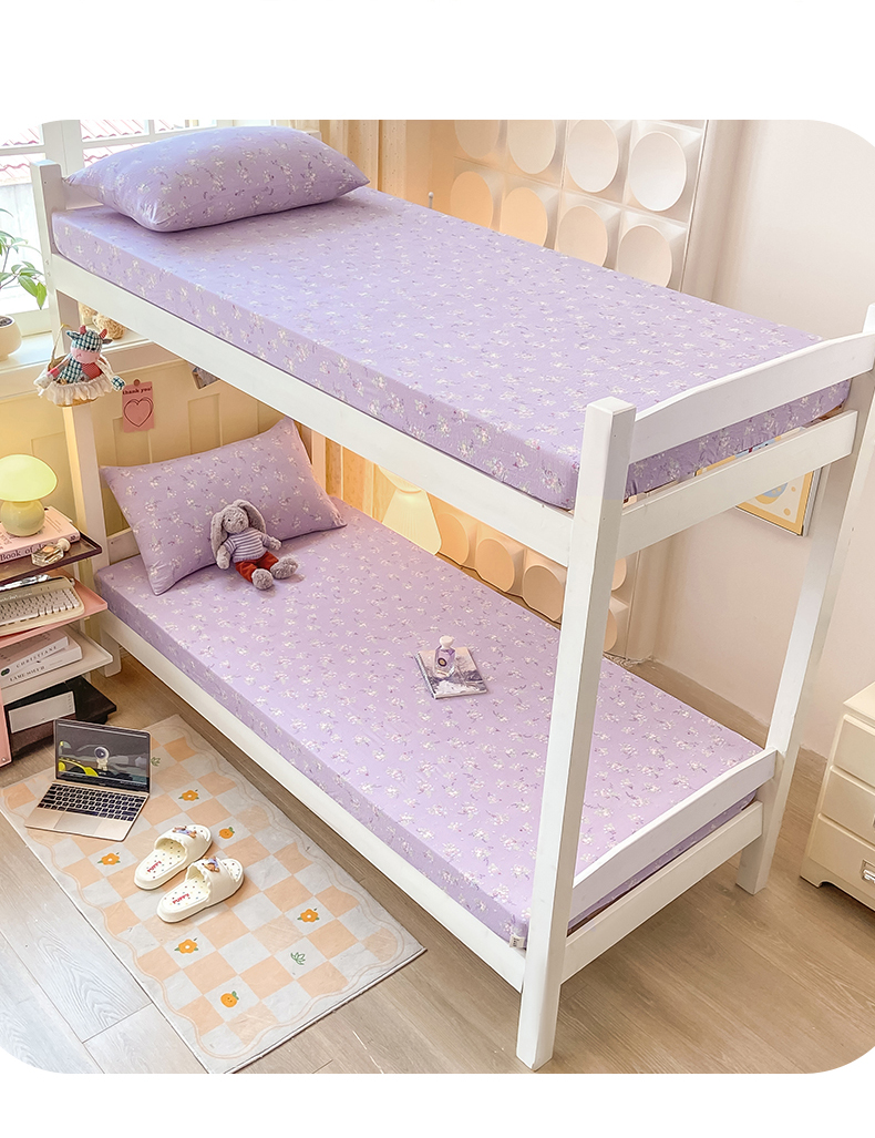 眠势力 2025新款ins云感双层纱学生宿舍上下铺奶油风云感四季款单床笠床笠单件 紫色花海