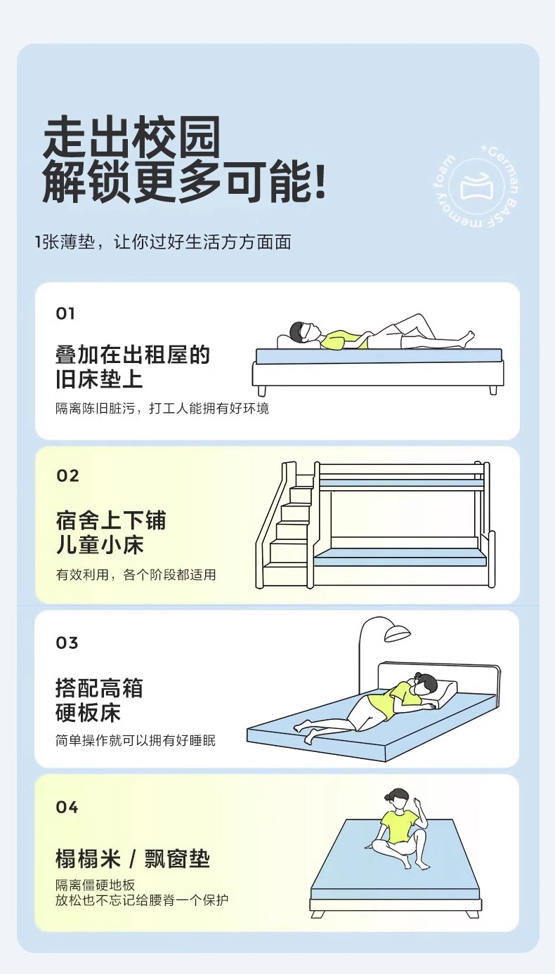 商品名称:(总)缔莱(十三铭)被业 2025新款A类牛奶丝乳胶记忆抗压棉床垫-学生款