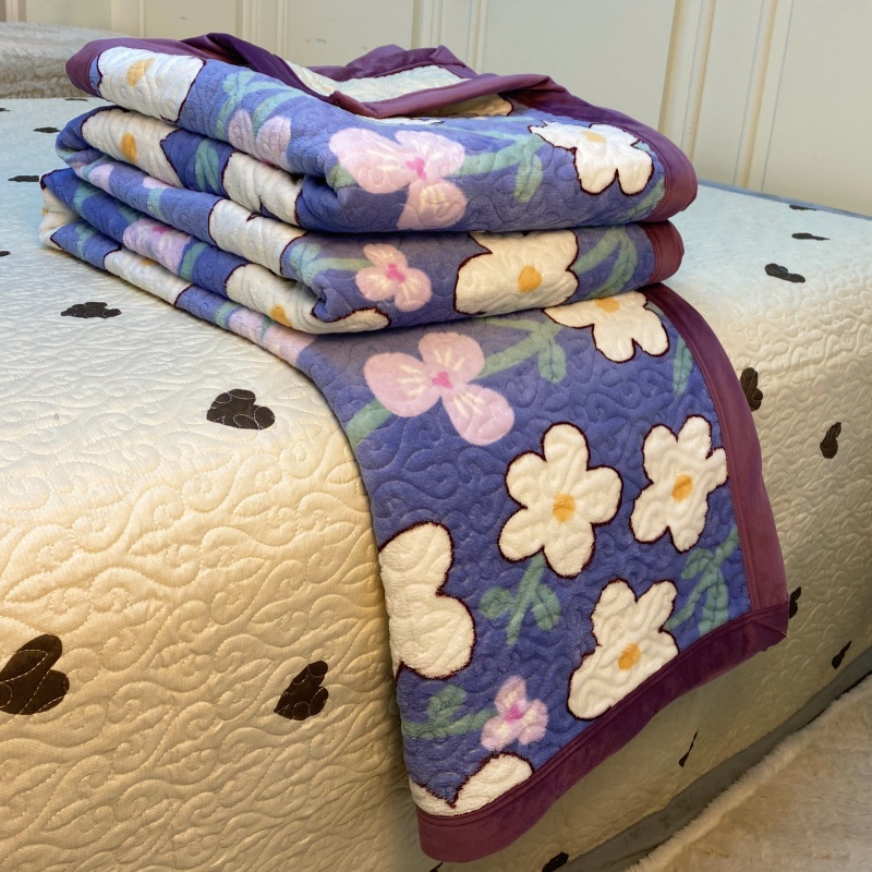 梦精灵 2025新款经典款牛奶绒多功能盖毯床盖 直角-花漾