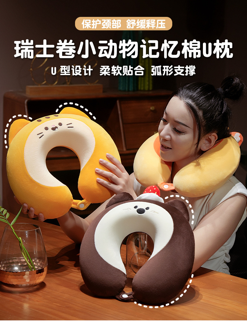 当前位置: 91家纺网 > 商品网购 > 枕头/枕芯/保健枕/颈椎枕 > U型枕 > 仟亿莱 2025新款瑞士卷动物系列记忆棉U枕 记忆草莓西高地 33*32cm/只