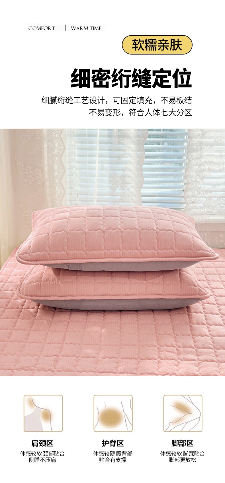 商品名称:梦舒羽 2025新款云感双层纱夹棉枕套宿舍单人枕芯套一对装加厚枕头套 告白粉