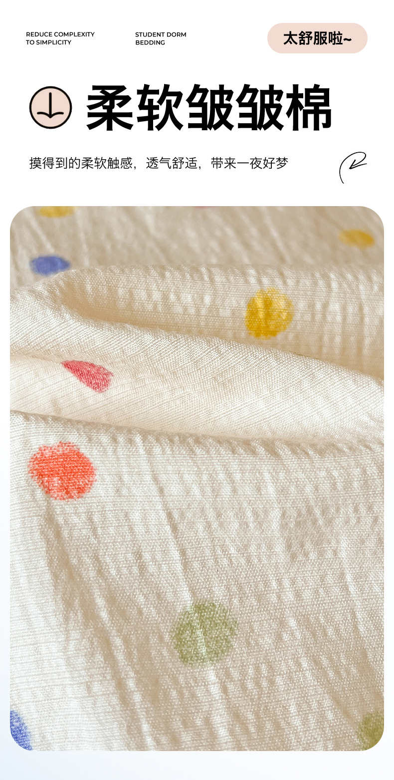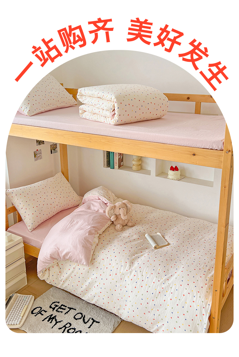 当前位置: 91家纺网 > 商品网购 > 床品套件 > 三件套 > 名兮家居 2025新款皱皱棉学生床宿舍上下铺三件套六件套 心动波点