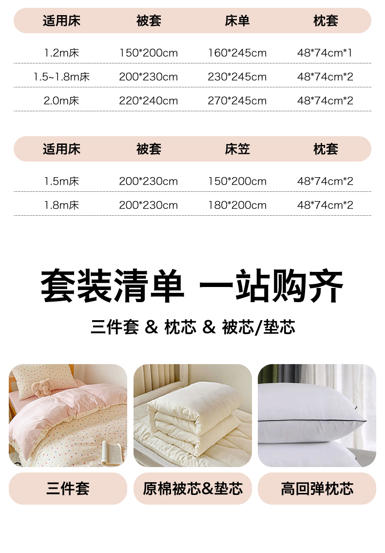 0.9m床六件套 【三件套+春秋被约3斤+枕芯+垫芯】 | ¥126.00 |