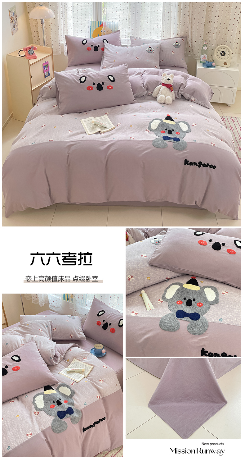 (总)寐居家纺 2025新款毛球毛巾绣牛奶绒四件套,毛球球·巴克汪仔,毛球球·豆蔻女孩,毛球球·奶黄拉布,毛球球·心动KT喵,组合图仅供展示不可下单