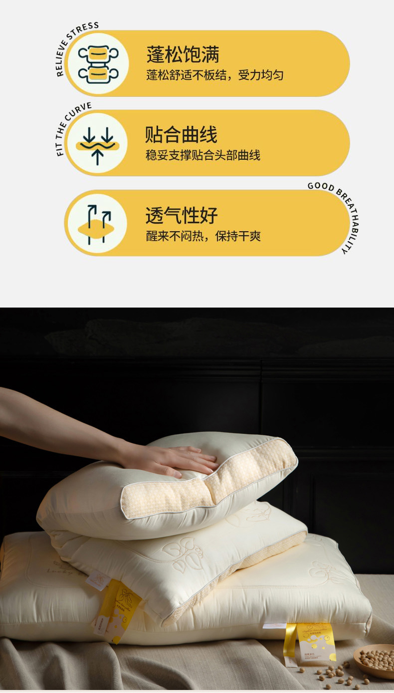 当前位置: 91家纺网 > 商品网购 > 枕头/枕芯/保健枕/颈椎枕 > 普通枕芯 > 慕尚家纺 2025新款简约天丝棉绣花枕头枕芯 舒适大豆枕 48x74cm/只