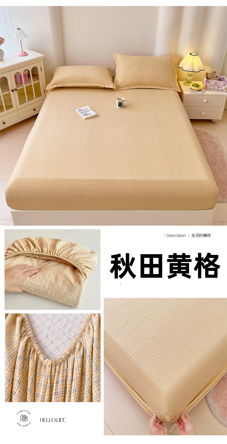 • 91家纺网 家纺一手货源 找家纺 梦舒羽 2025新款双层纱格子床笠防滑床罩床垫保护套榻榻米宿舍三件套 常规款-秋田黄格
