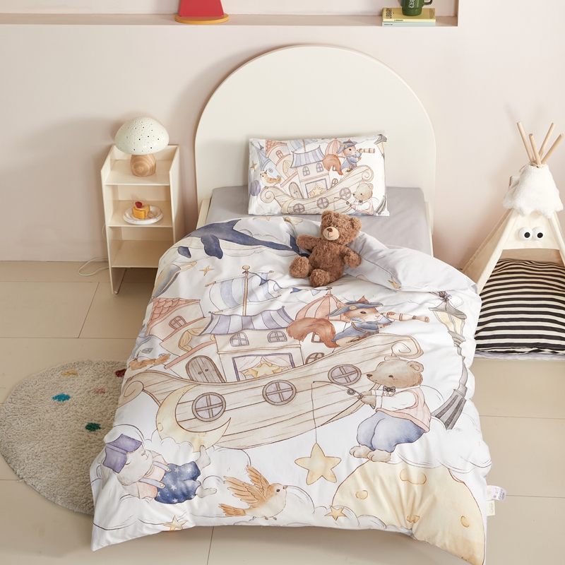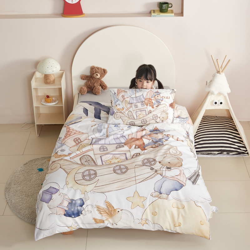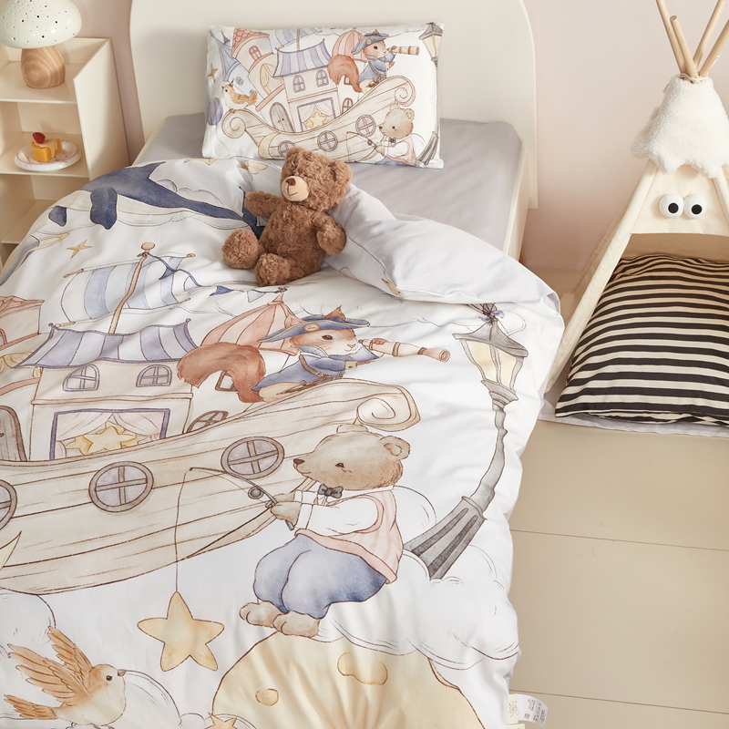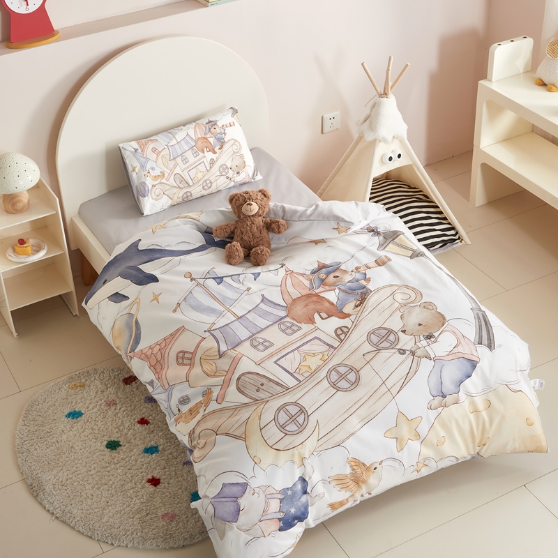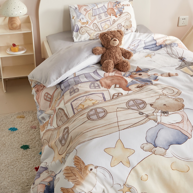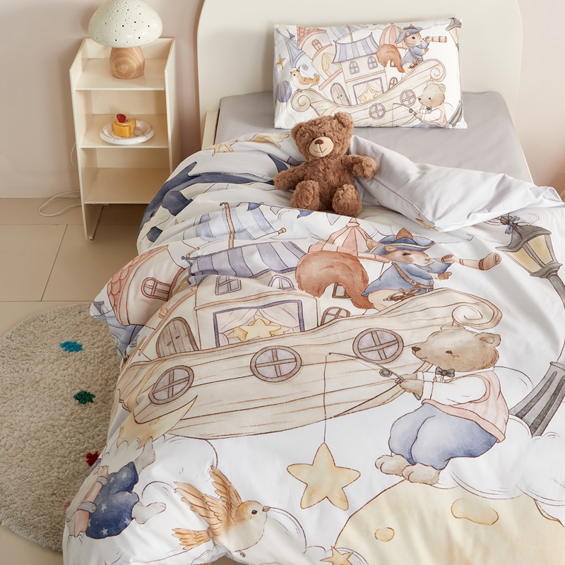 当前位置: 91家纺网 > 商品网购 > 床品套件 > 多件套 > 多件套 > 荷马之梦 2025新款梦境系列—全棉40s数码印花原创手绘大版定位儿童幼儿园套件 云端国度