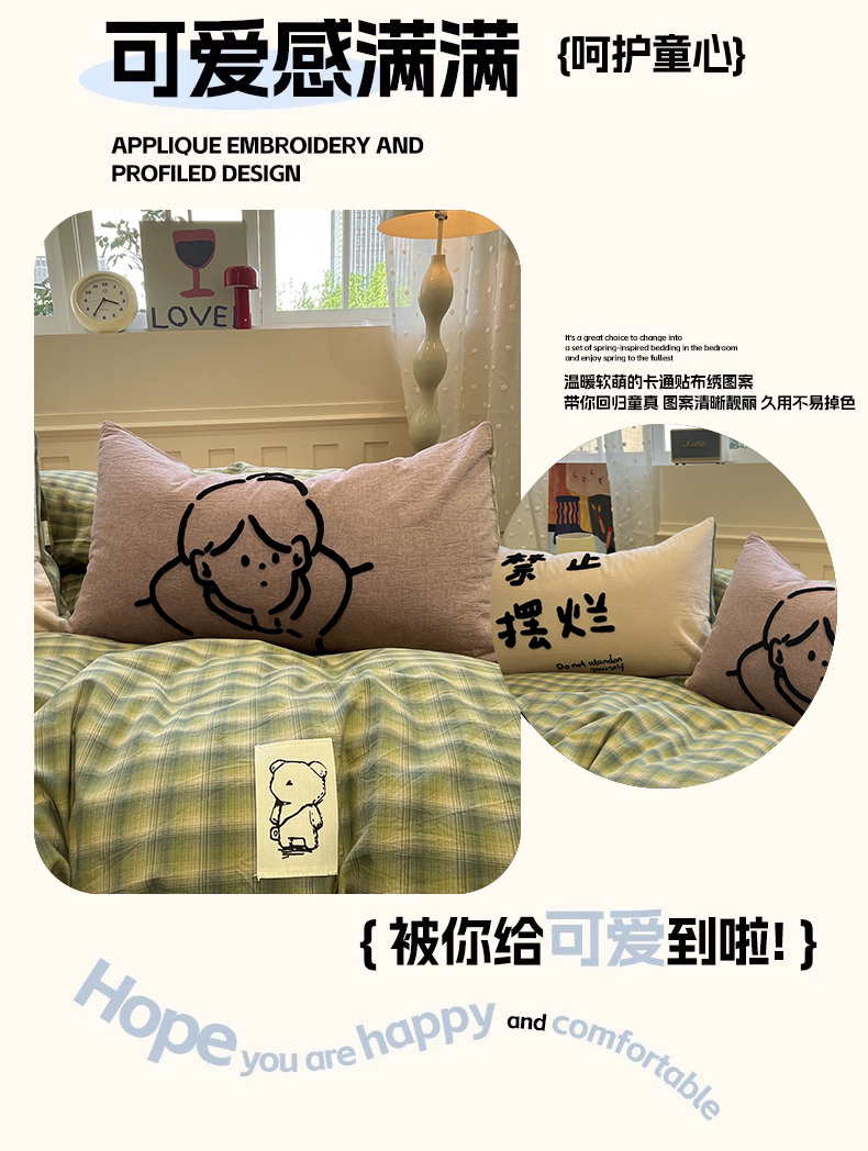 当前位置: 91家纺网 > 商品网购 > 床品套件 > 四件套 > 全棉普通四件套 > 花漾家居 2025新款无印宿舍简约全棉色织水洗棉毛巾绣四件套 绿咖格