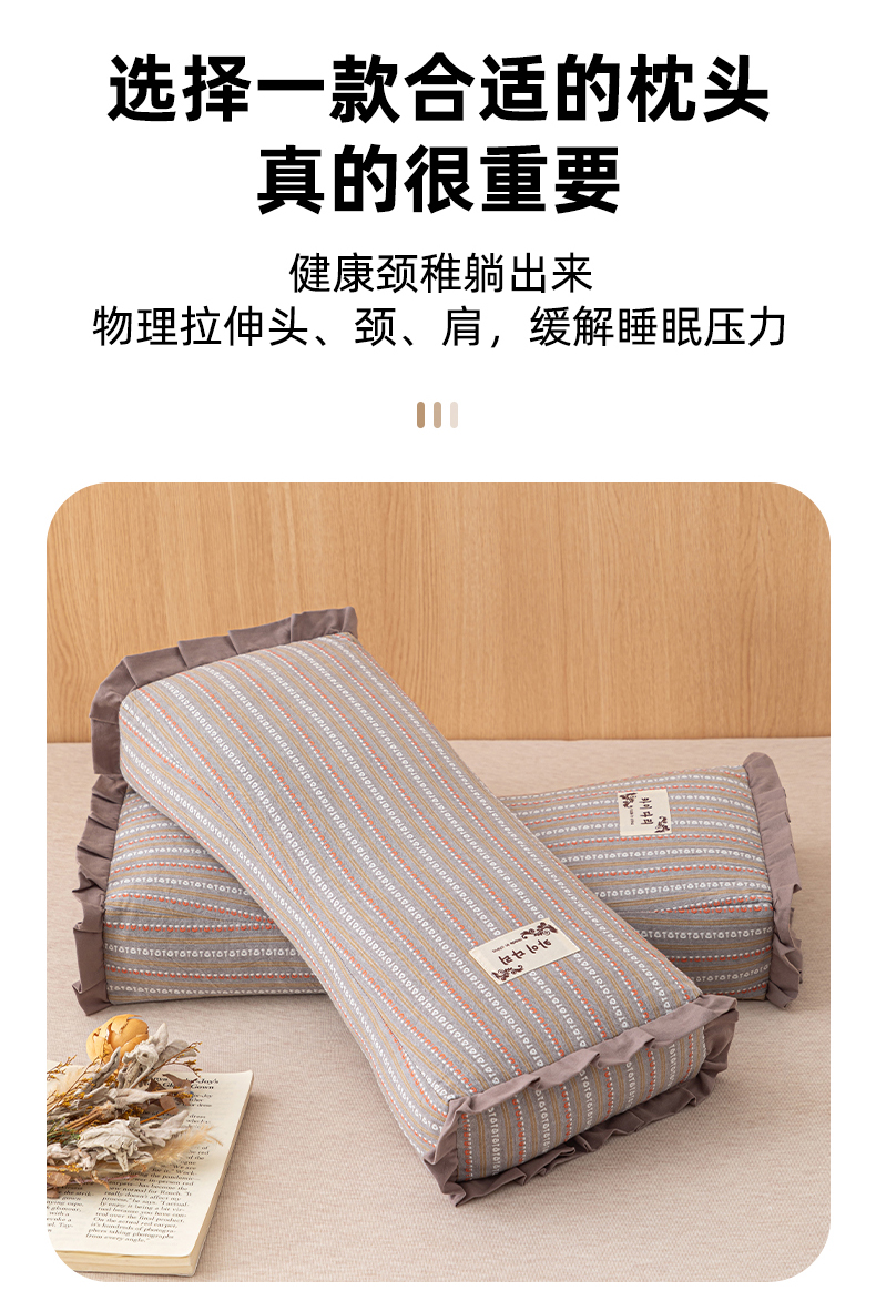 当前位置: 91家纺网 > 商品网购 > 枕头/枕芯/保健枕/颈椎枕 > 普通枕芯 > 织布人 2025新款荞麦枕全棉条纹花边护颈全荞麦壳枕头成人家用助眠硬枕芯 全棉条纹花边护颈枕-蓝灰 50x20cm/只