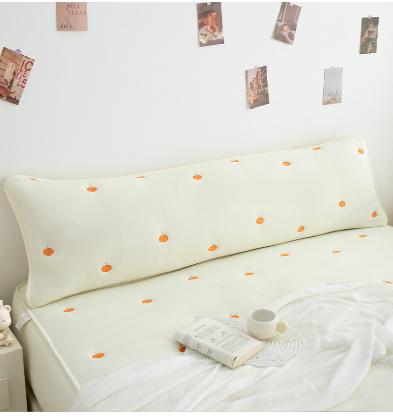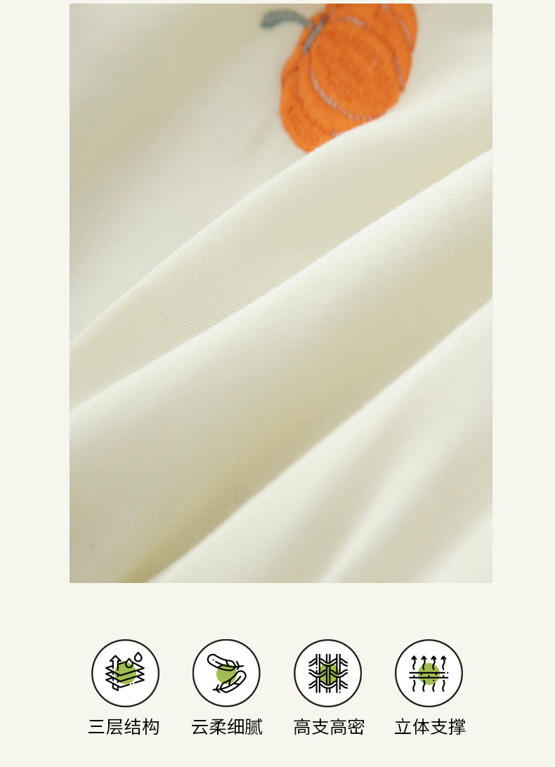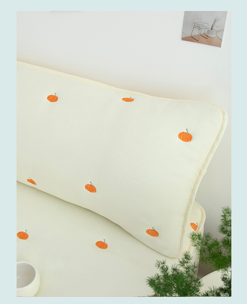 商品名称:乐居家纺 2025新款A类夹棉绣花双人枕套-南瓜 米白