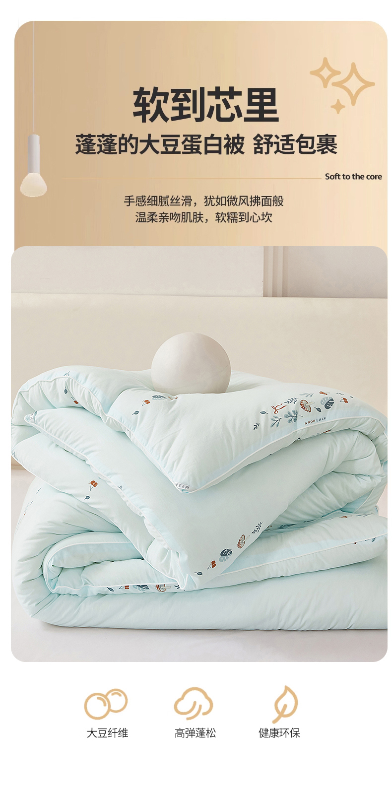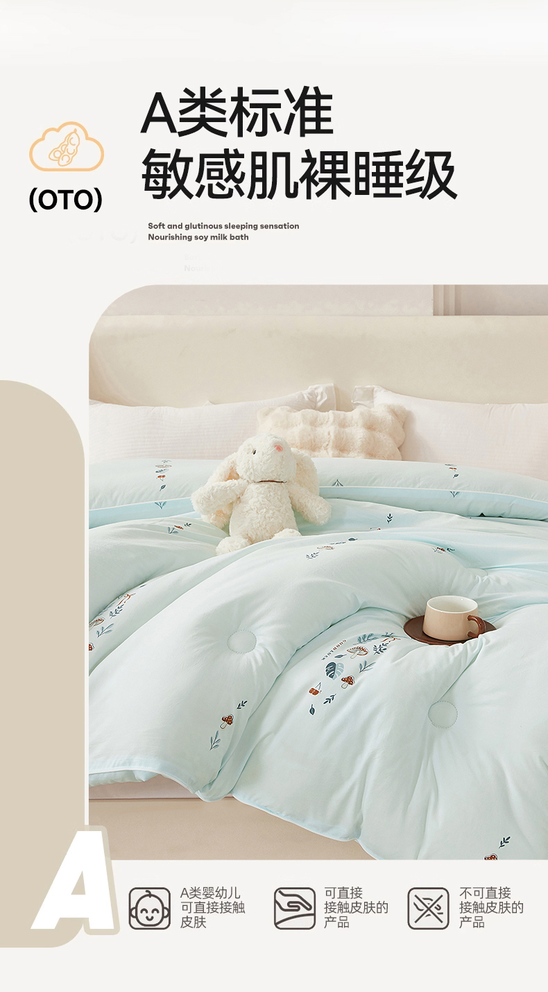 • 91家纺网 家纺一手货源 找家纺 尊妙被业 2025新款棉小柔大豆被被子被芯春秋被子母被直播批发夏被 春之笙-浅蓝