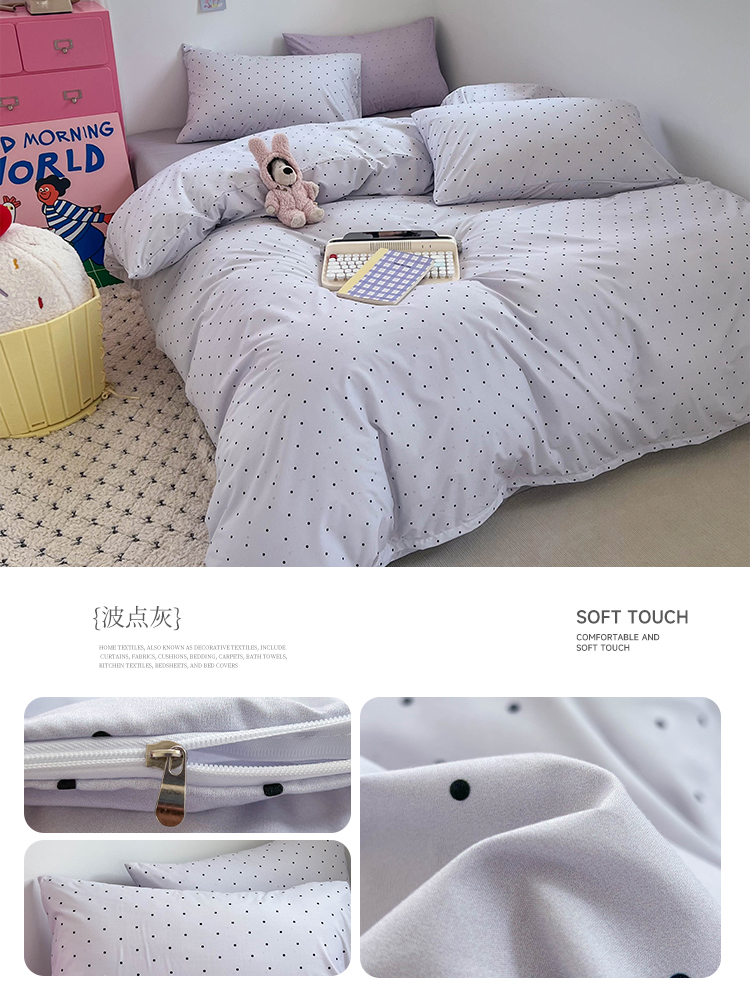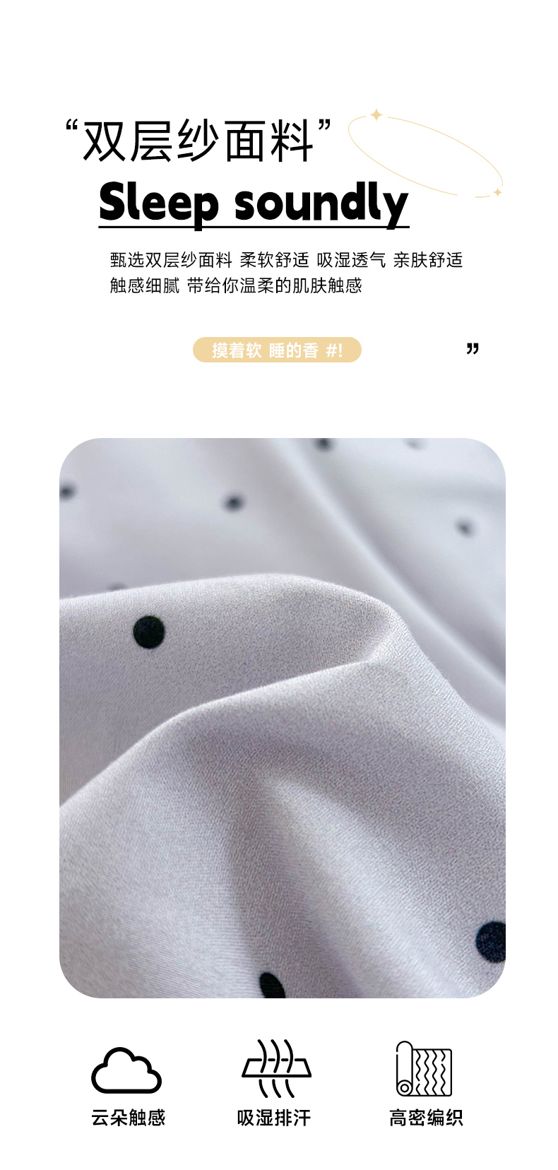 当前位置: 91家纺网 > 商品网购 > 床品套件 > 四件套 > 双层纱四件套 > 红嘴企鹅 2025新款云感提花双层纱印花系列四件套 波点灰