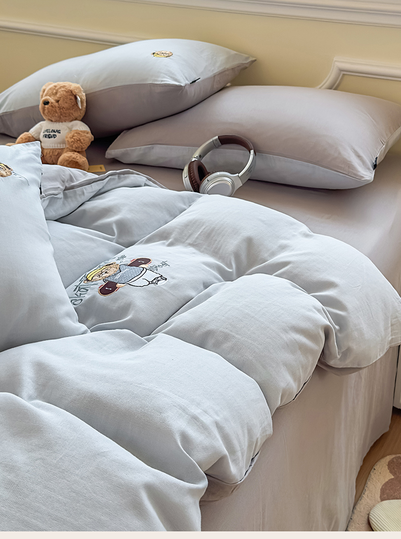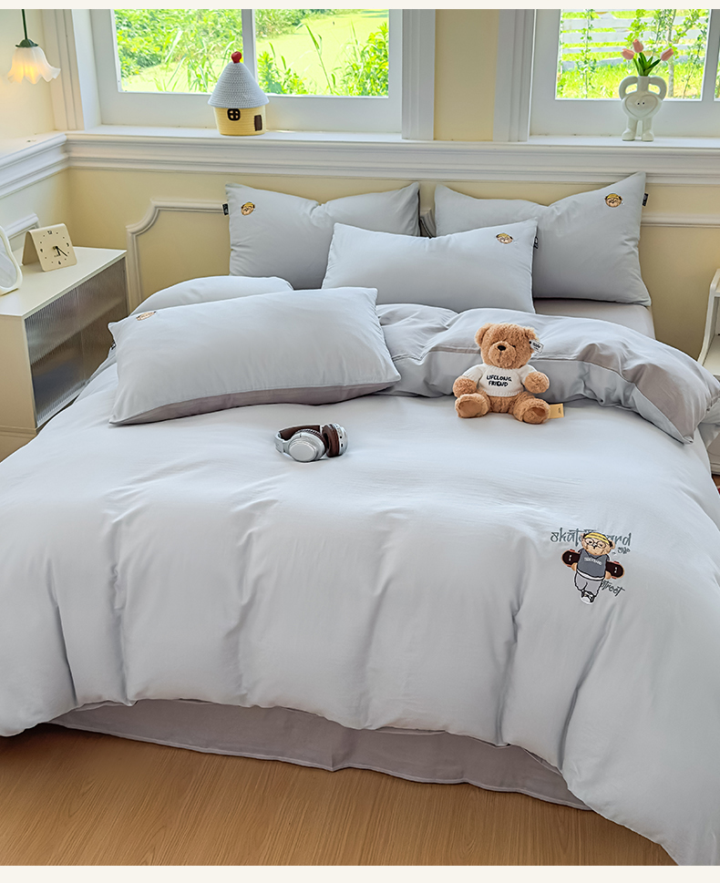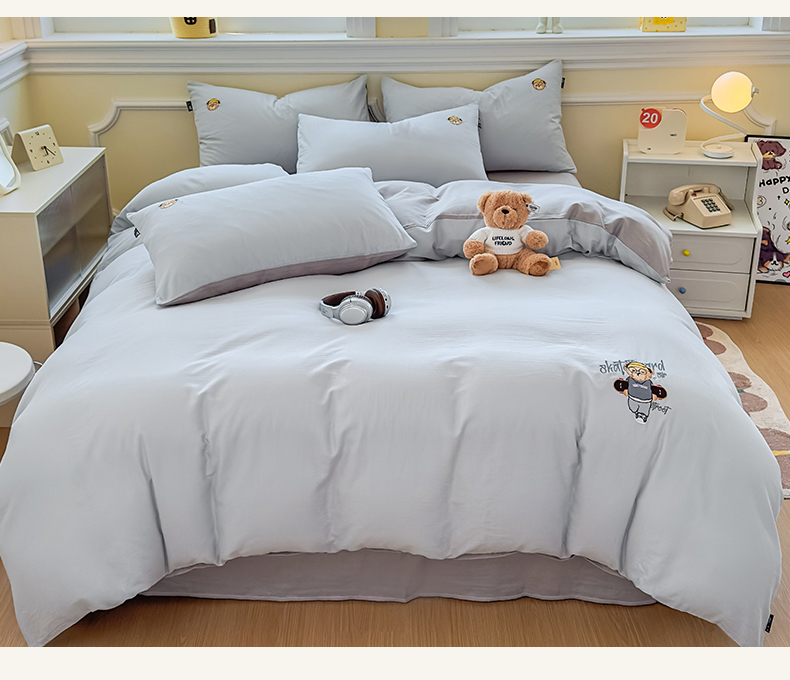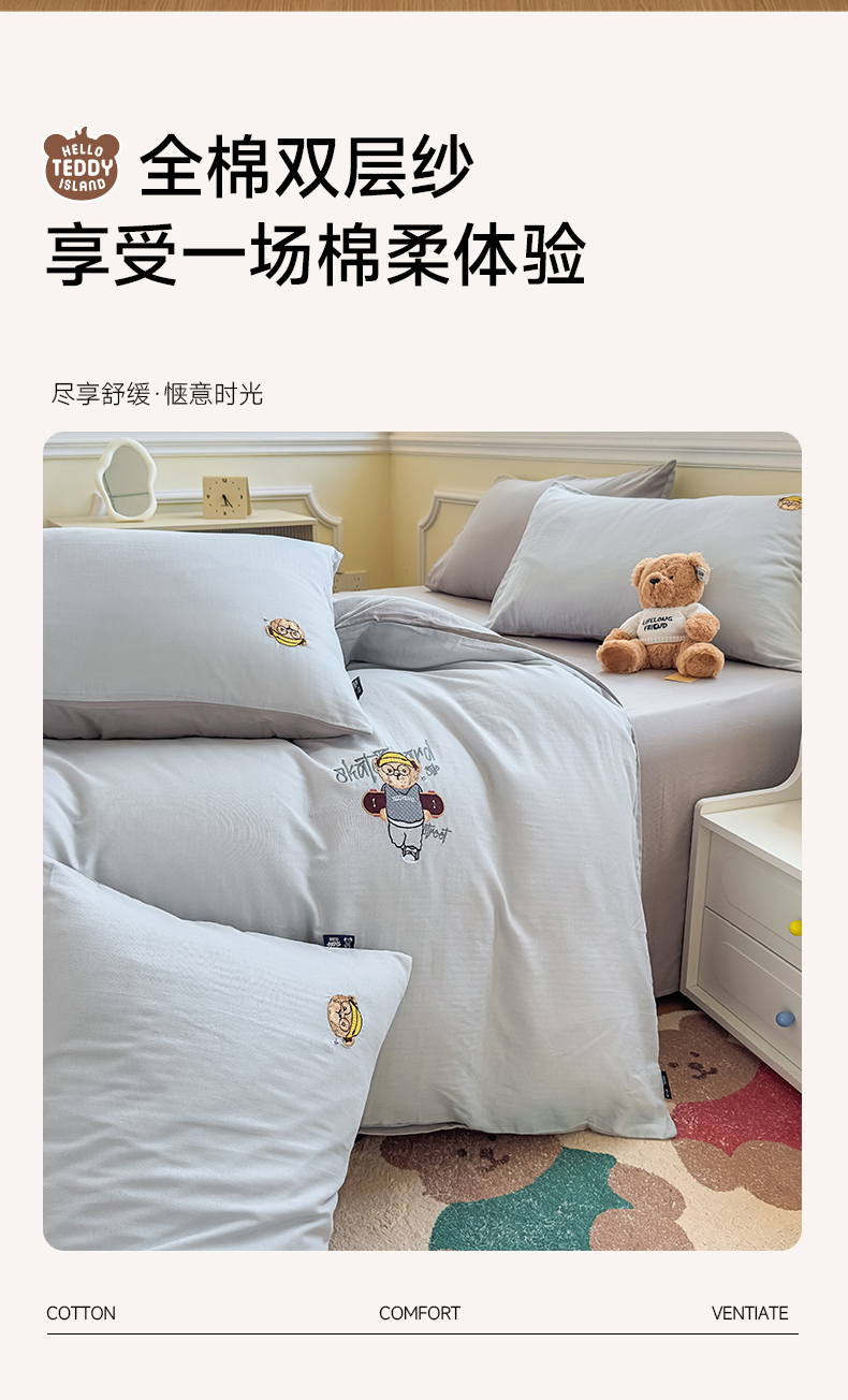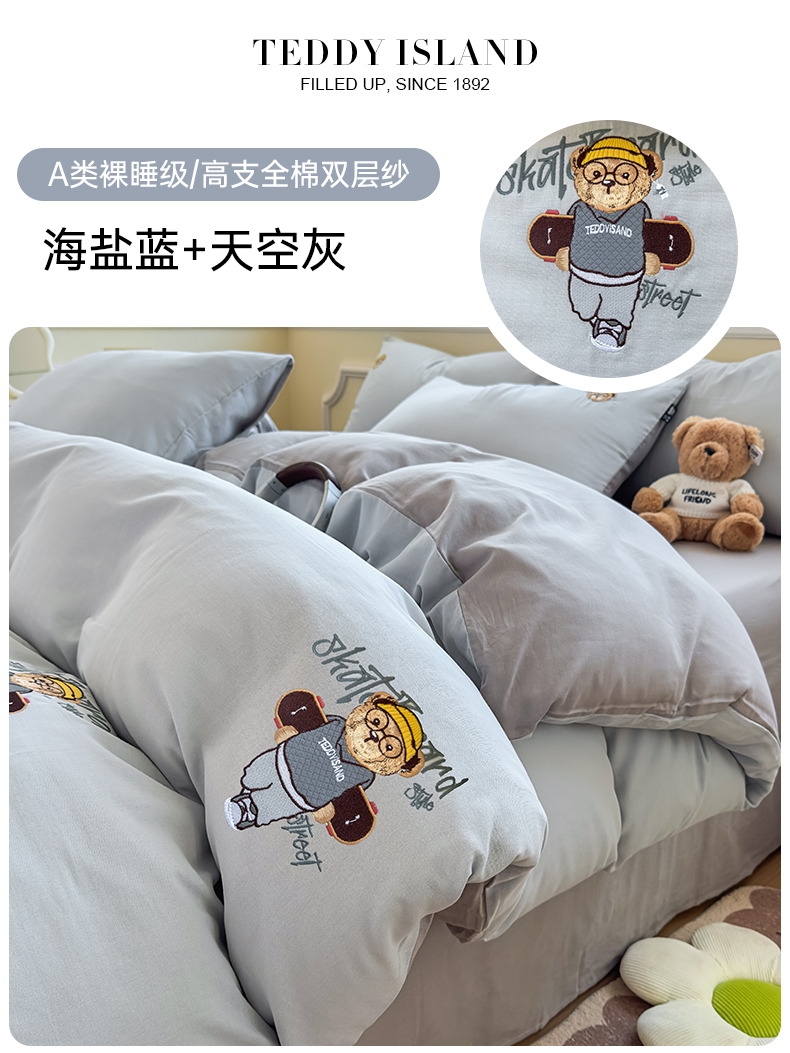 当前位置: 91家纺网 > 商品网购 > 床品套件 > 四件套 > 全棉普通四件套 > 尚品本色 2025新款轻奢全棉双层纱绣花四件套 海盐蓝+天空灰