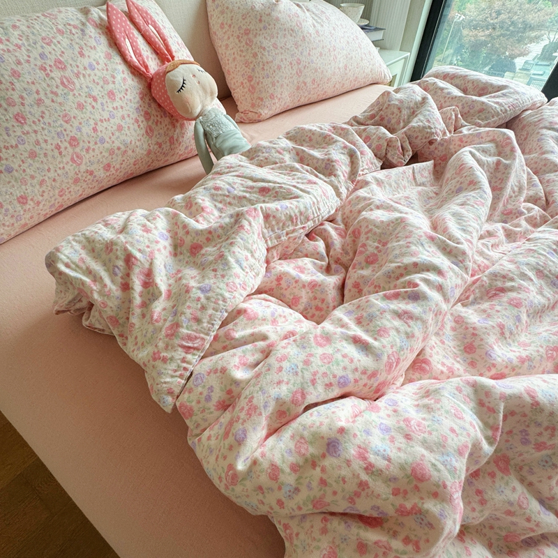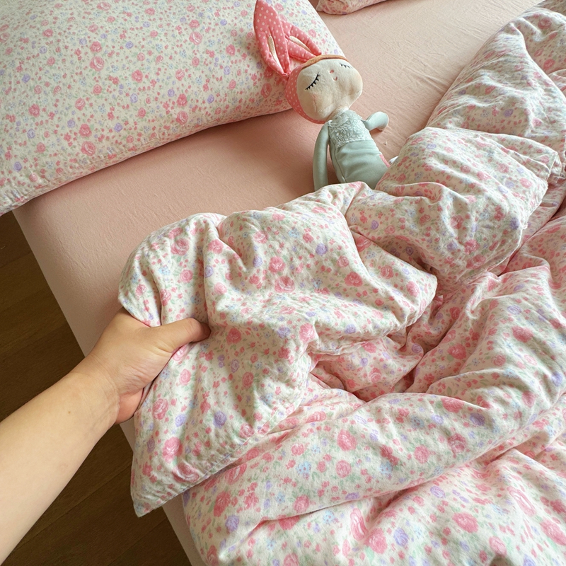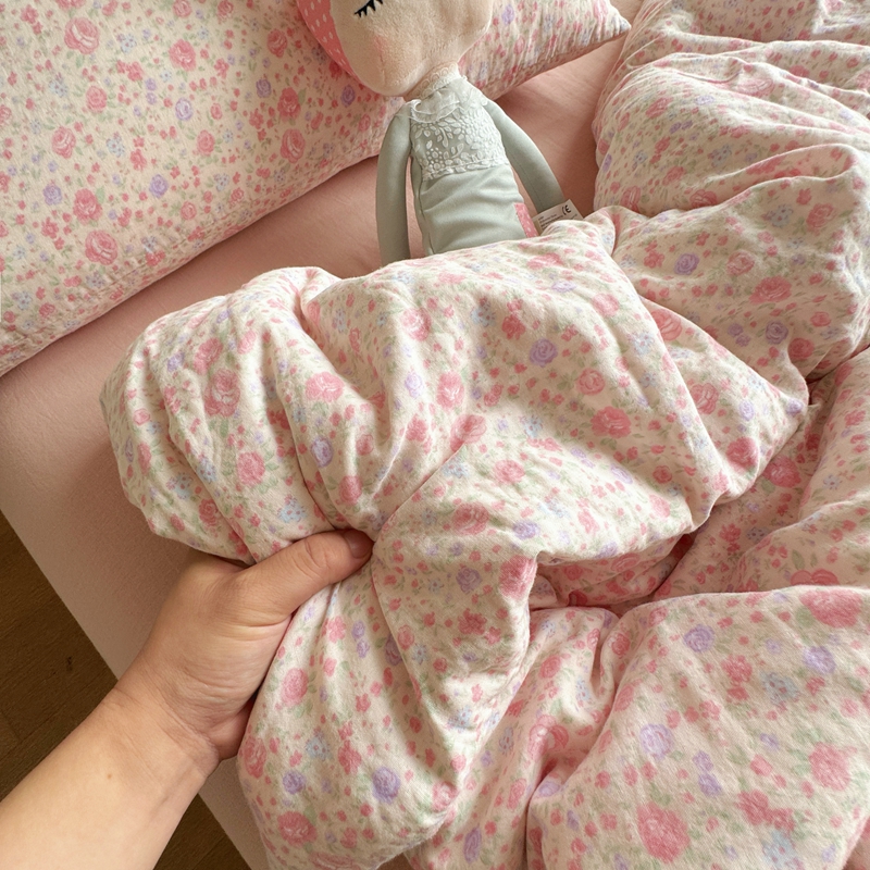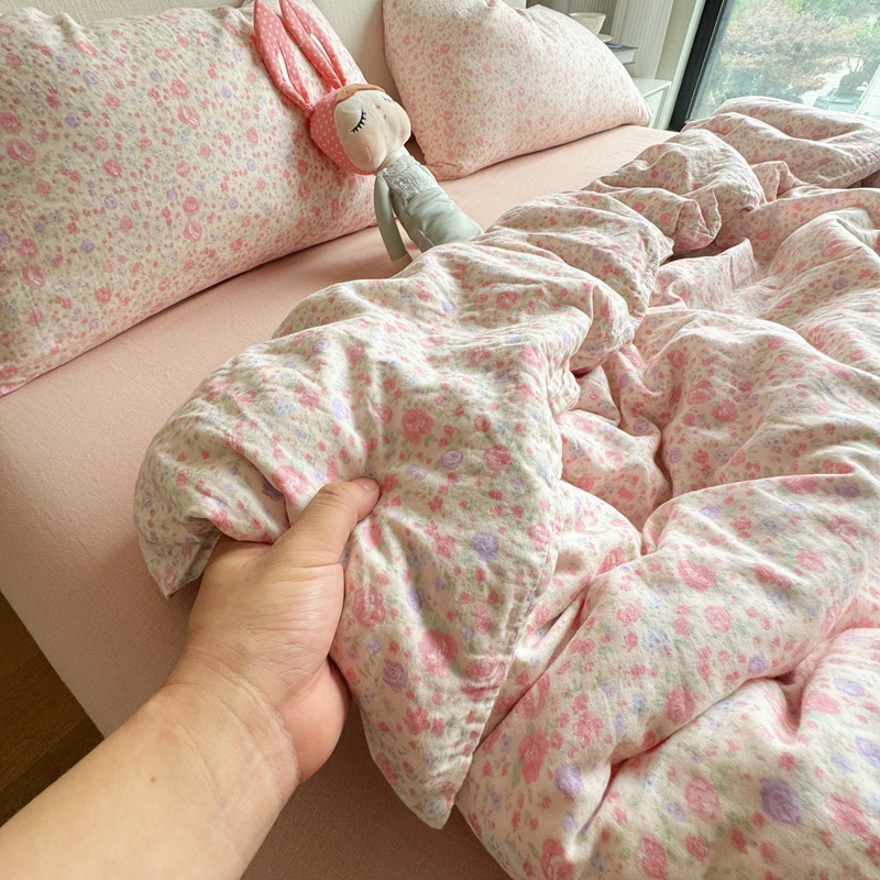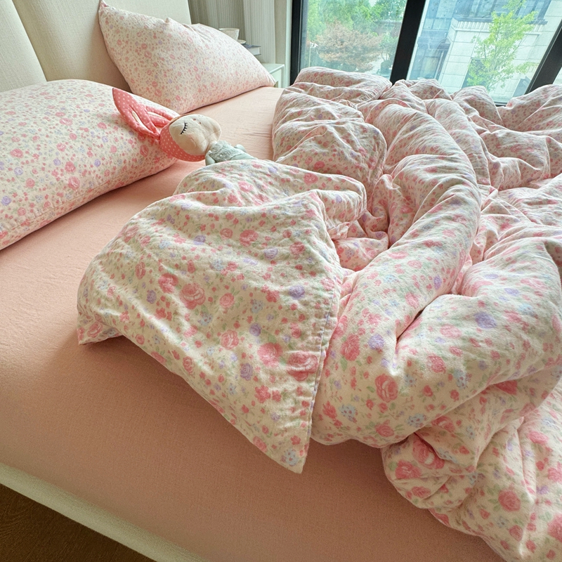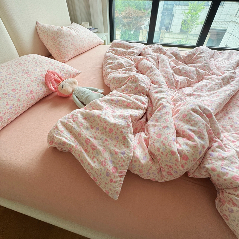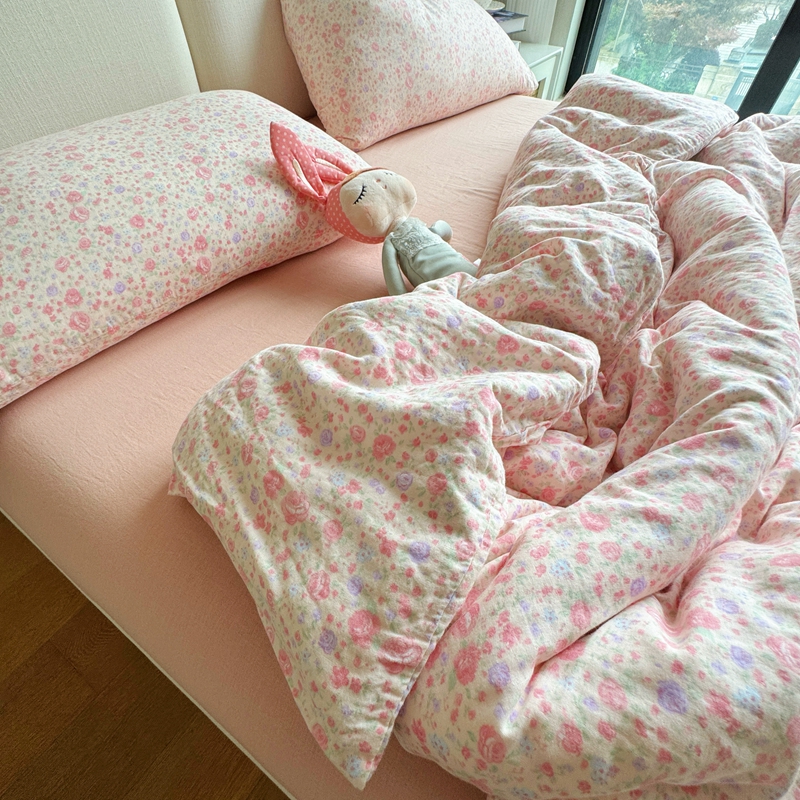 8+8 2025新款全棉A类母婴级抗菌有氧全棉双层纱亲肤全棉小清新印花三件套四件套 简约款-极简主义粉,简约款-极简主义粉