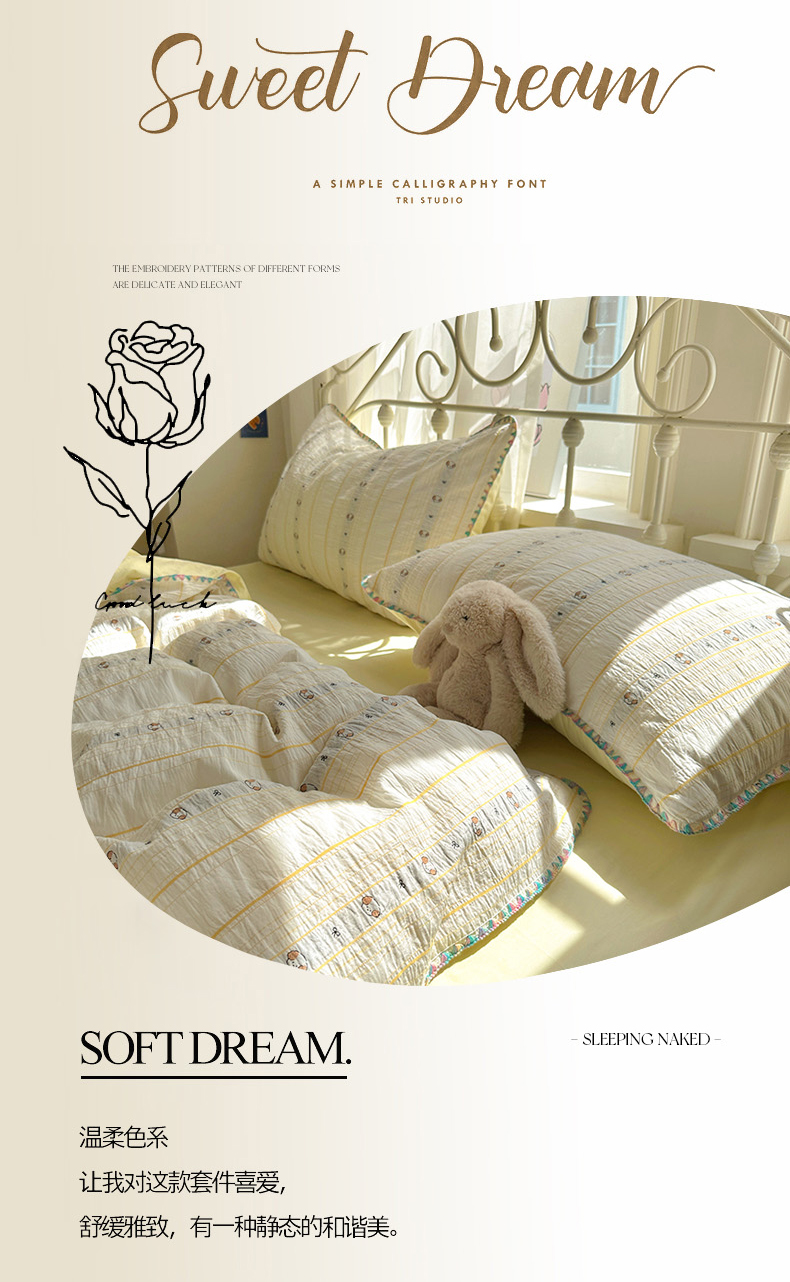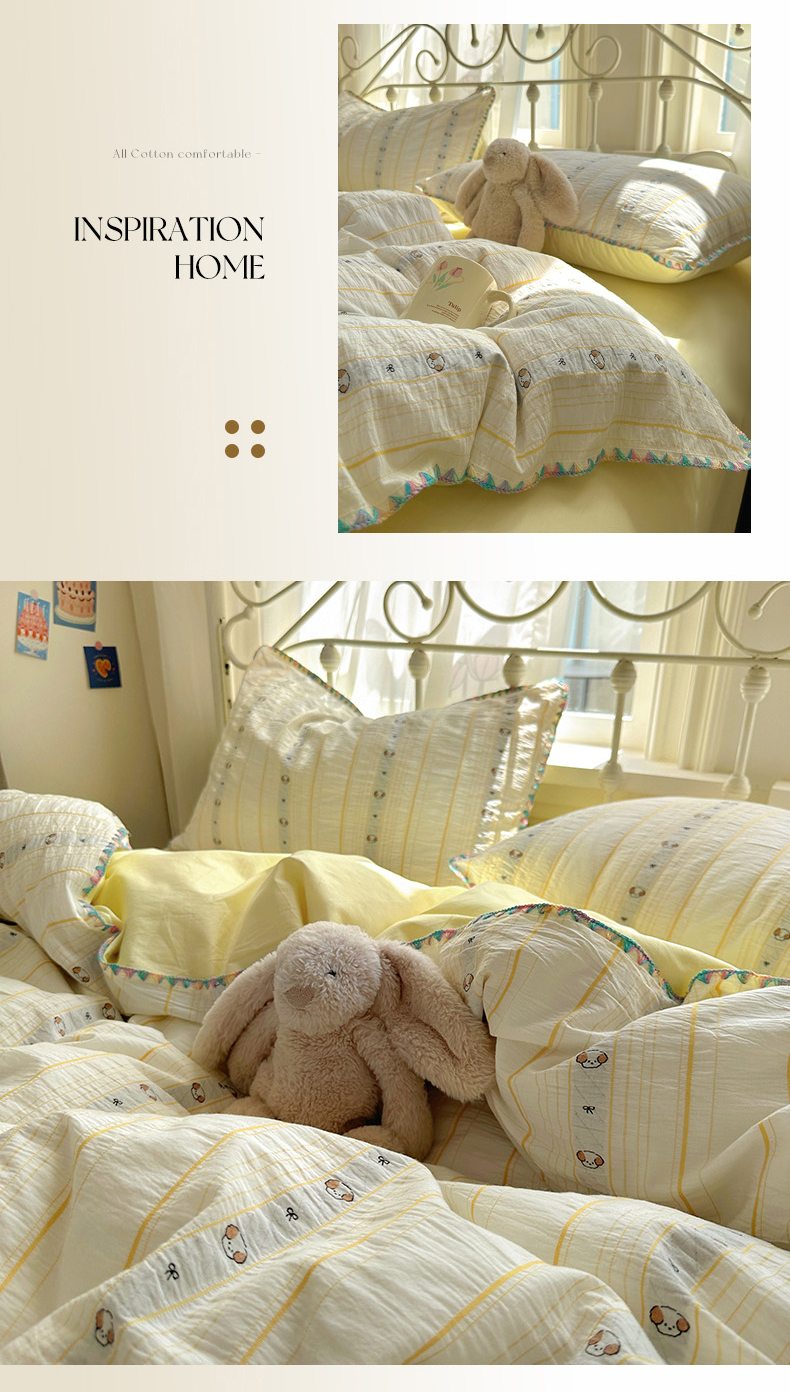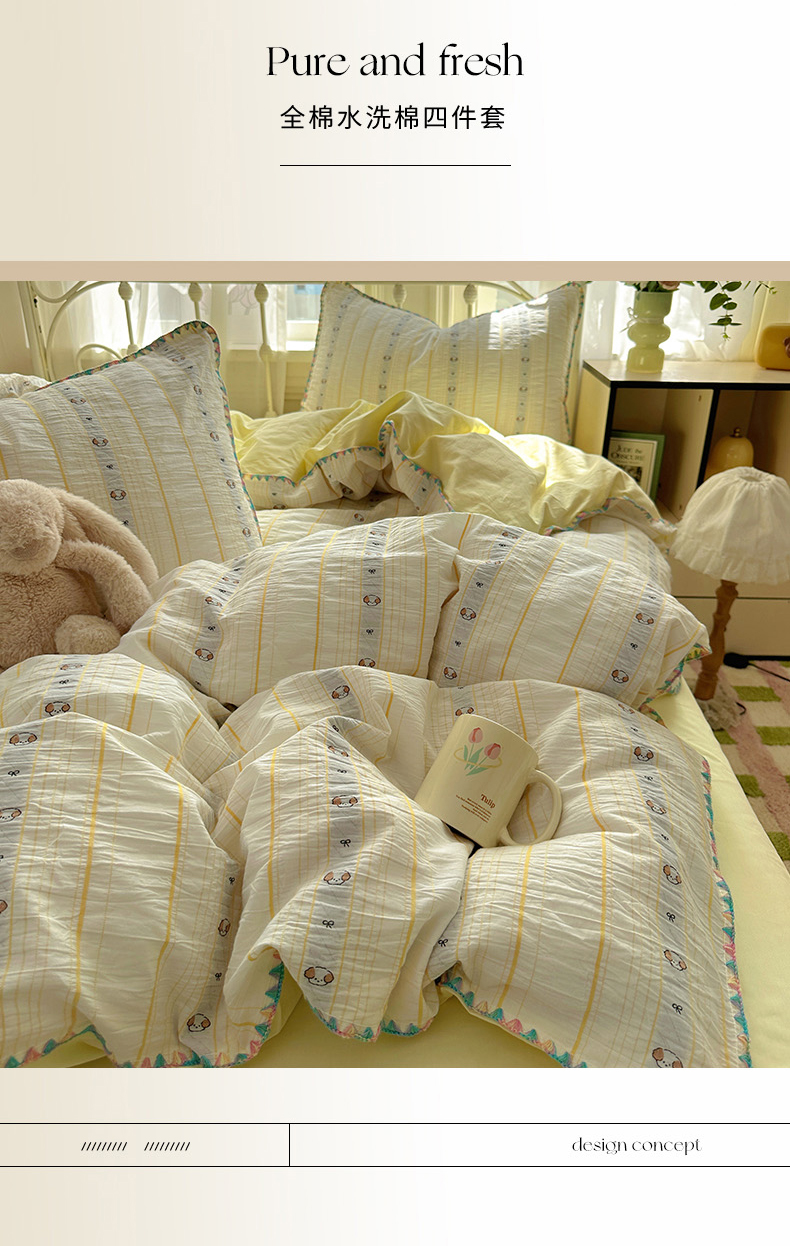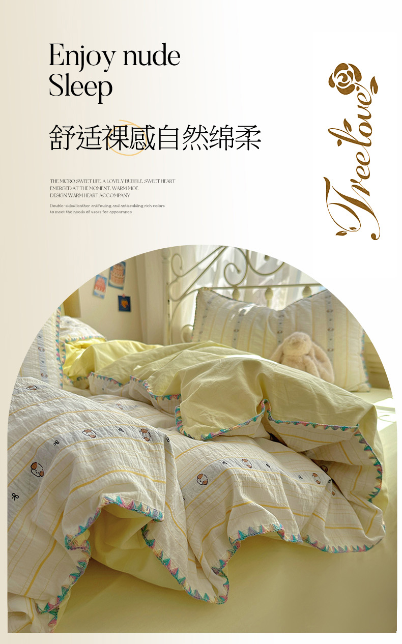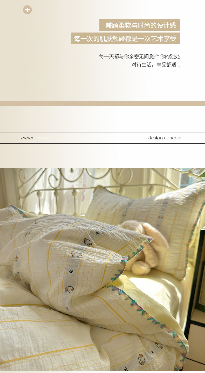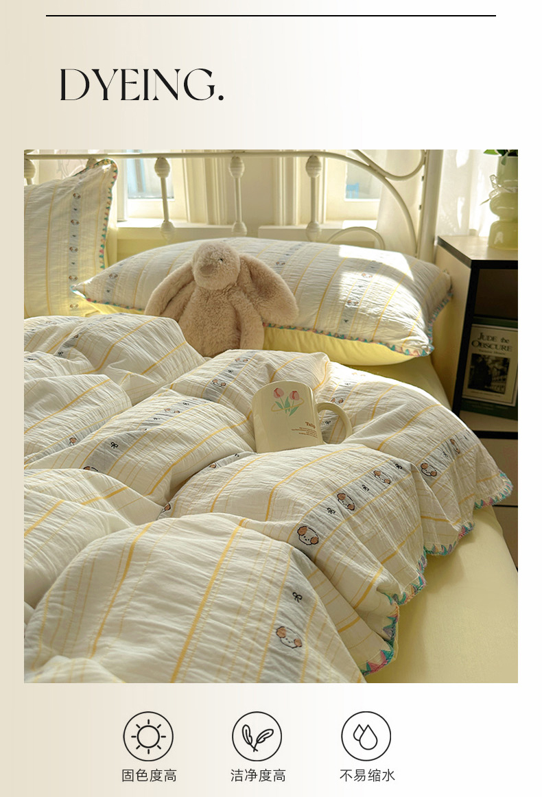 (总)田野 2023新款全棉A类贝壳边双层纱四件套,饼干熊,波波兔,呆萌熊,萌宠乐园,萌兔森林,甜心小兔,薇拉,小蘑菇,伊甜