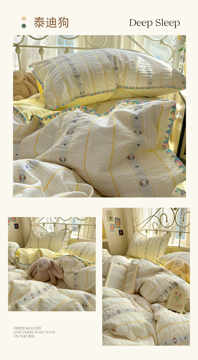 田野 2025新款全棉水洗棉提花四件套 泰迪狗