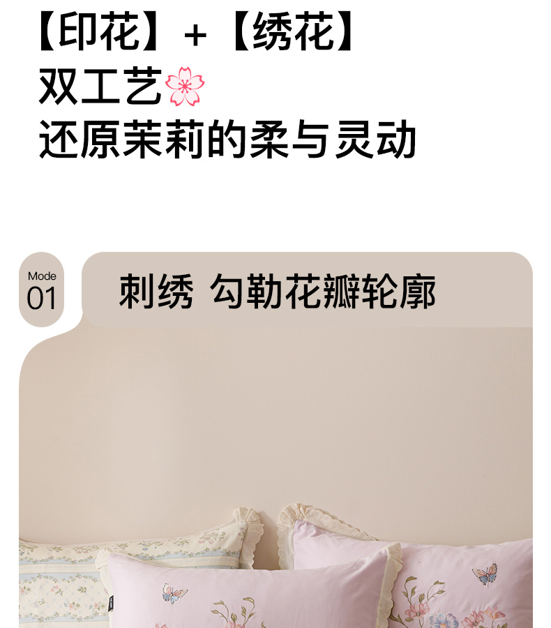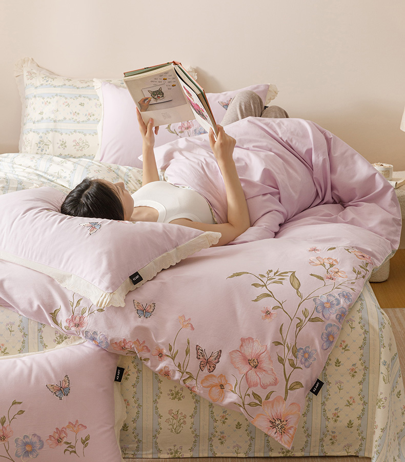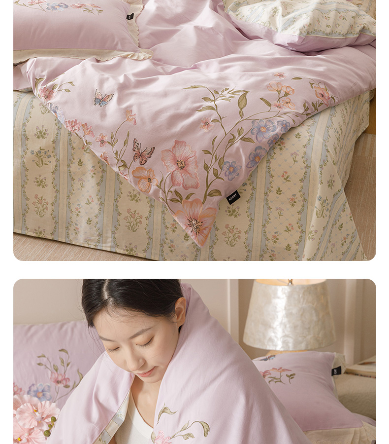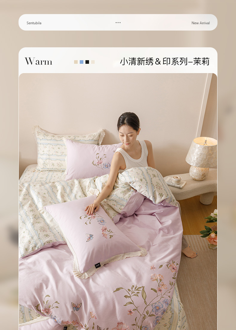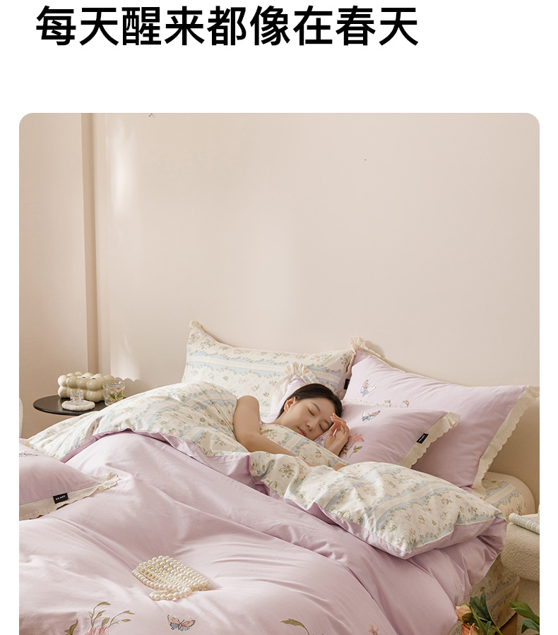 卡姿家纺 2025秋冬小清新绣花+印花四件套-茉莉 茉莉-紫
