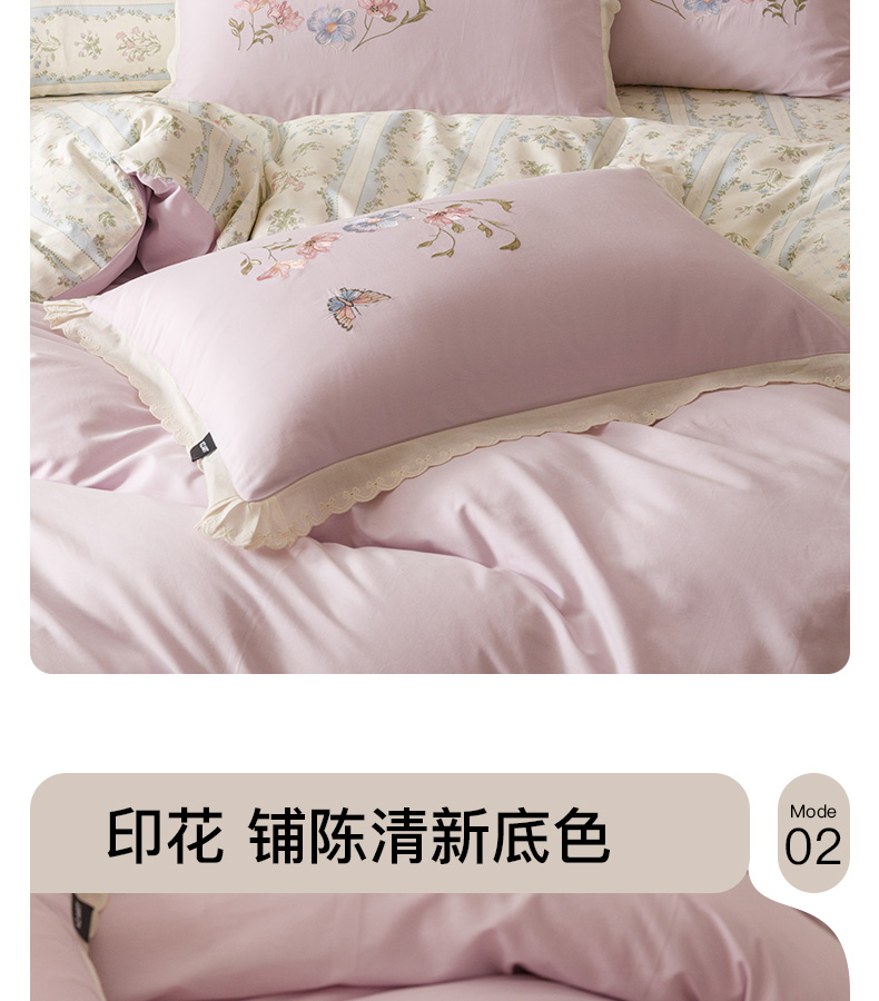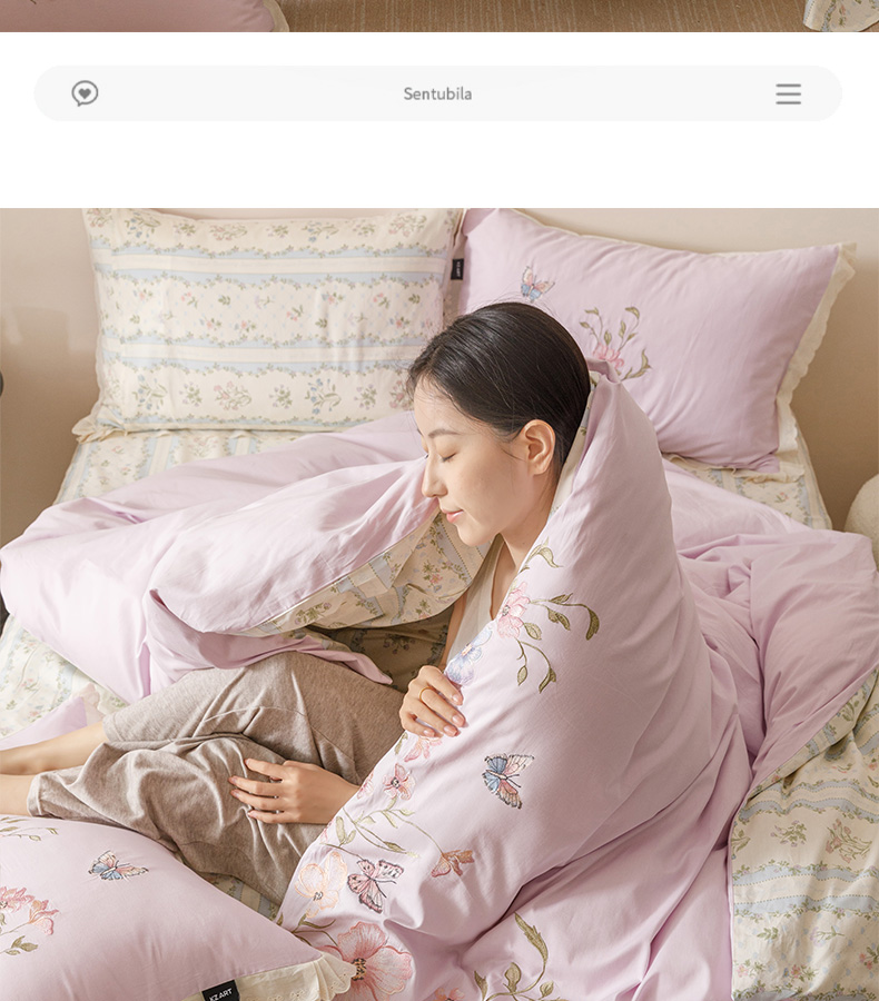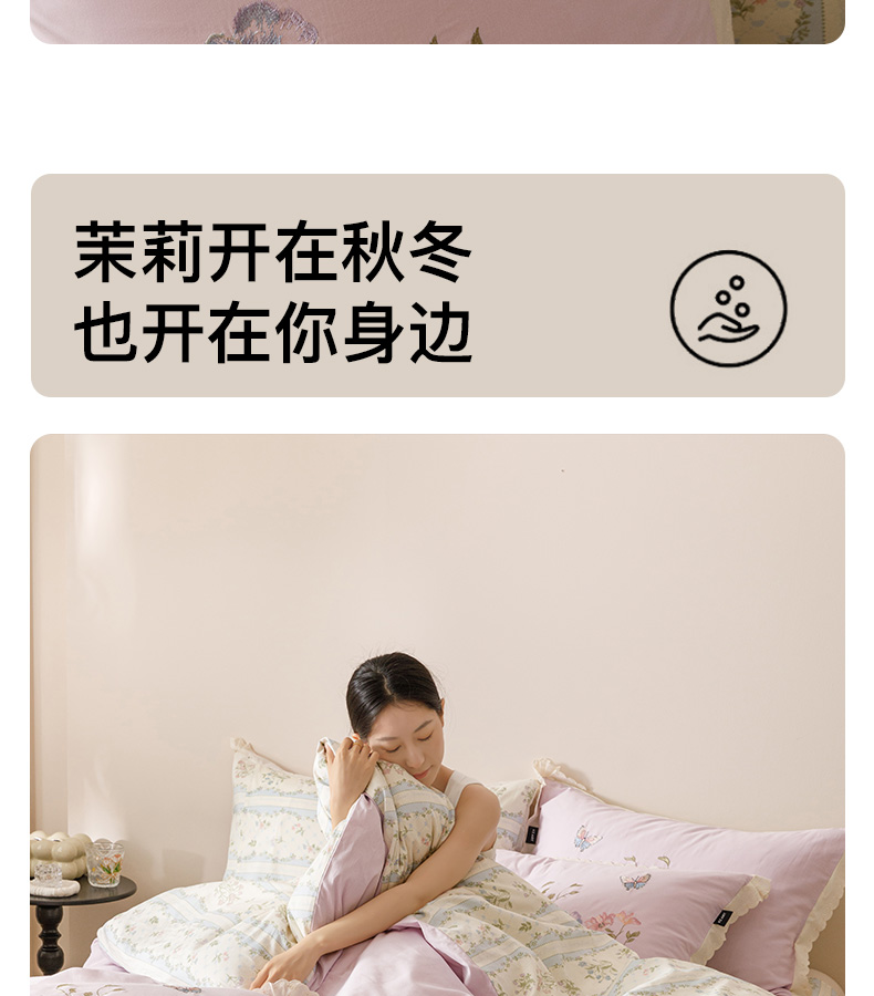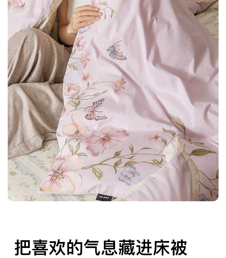 商品名称:卡姿家纺 2025秋冬小清新绣花+印花四件套-茉莉 茉莉-紫