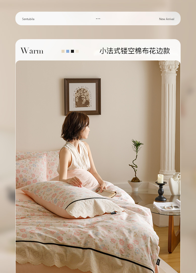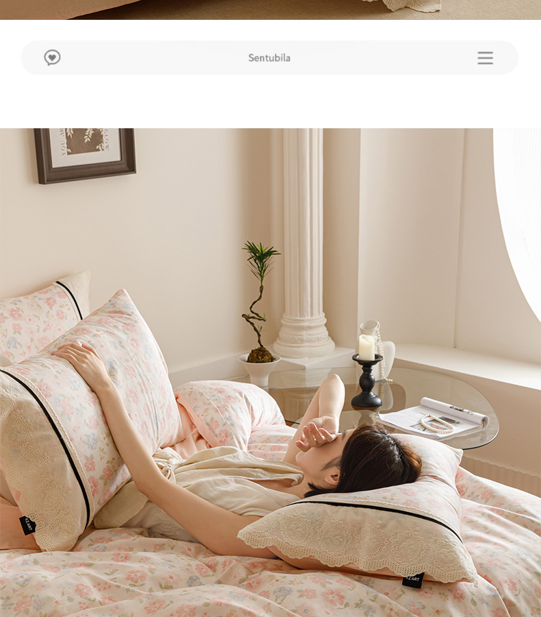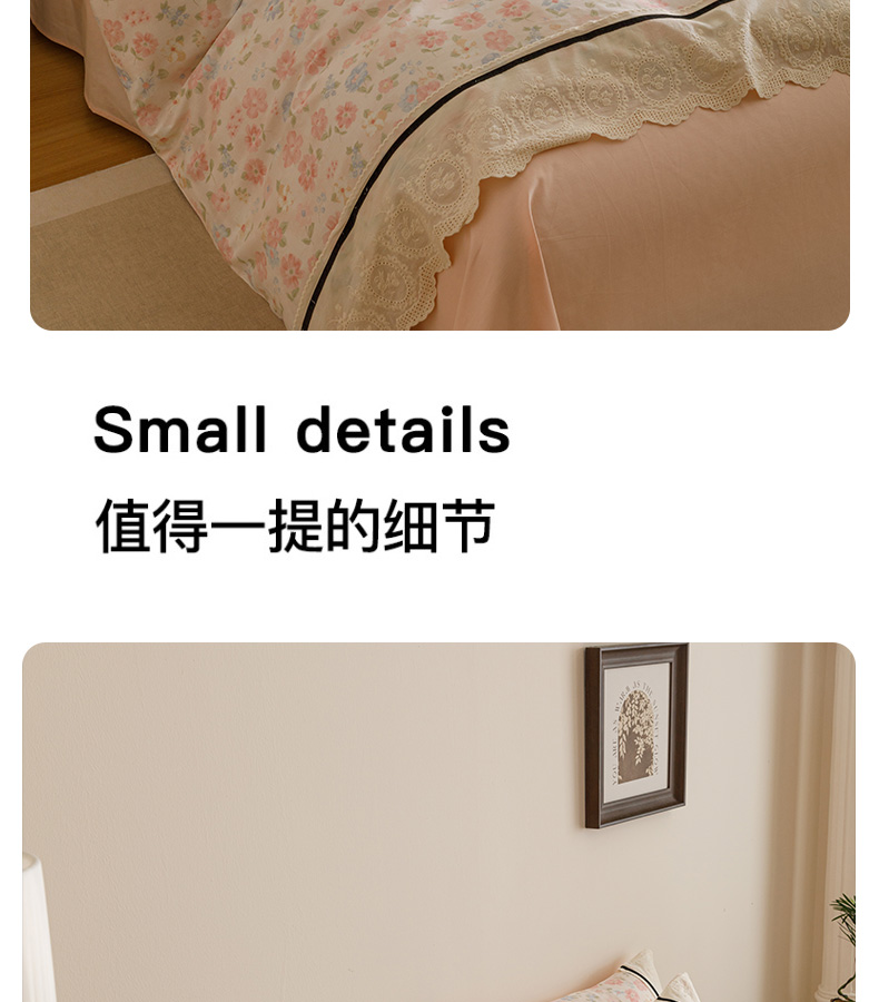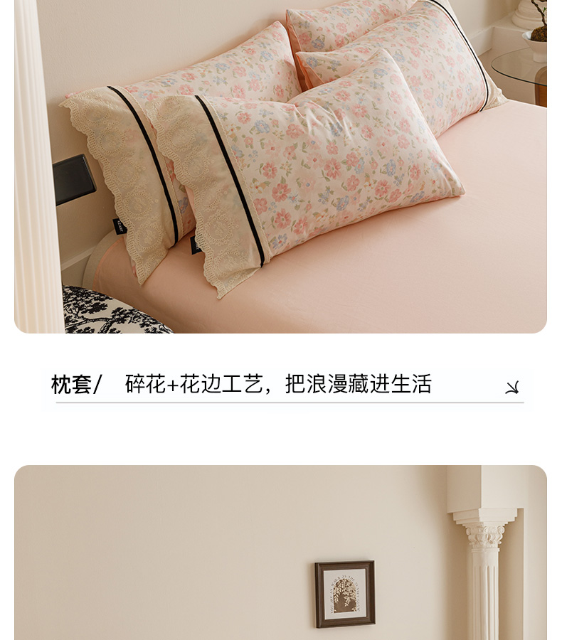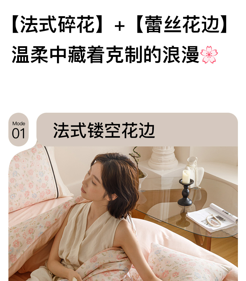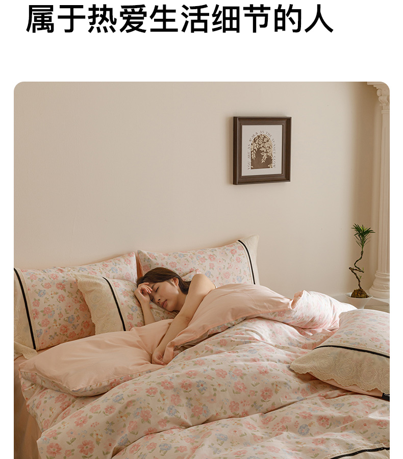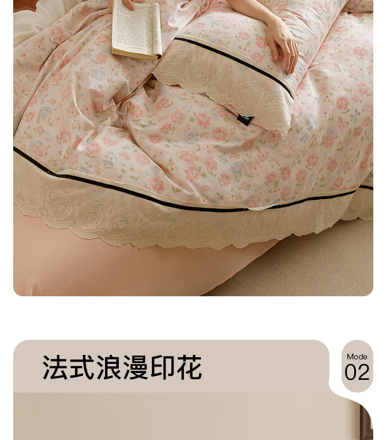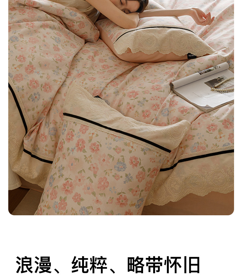 商品名称:卡姿家纺 2025新款小法式镂空棉布花边款四件套 阳光花朵