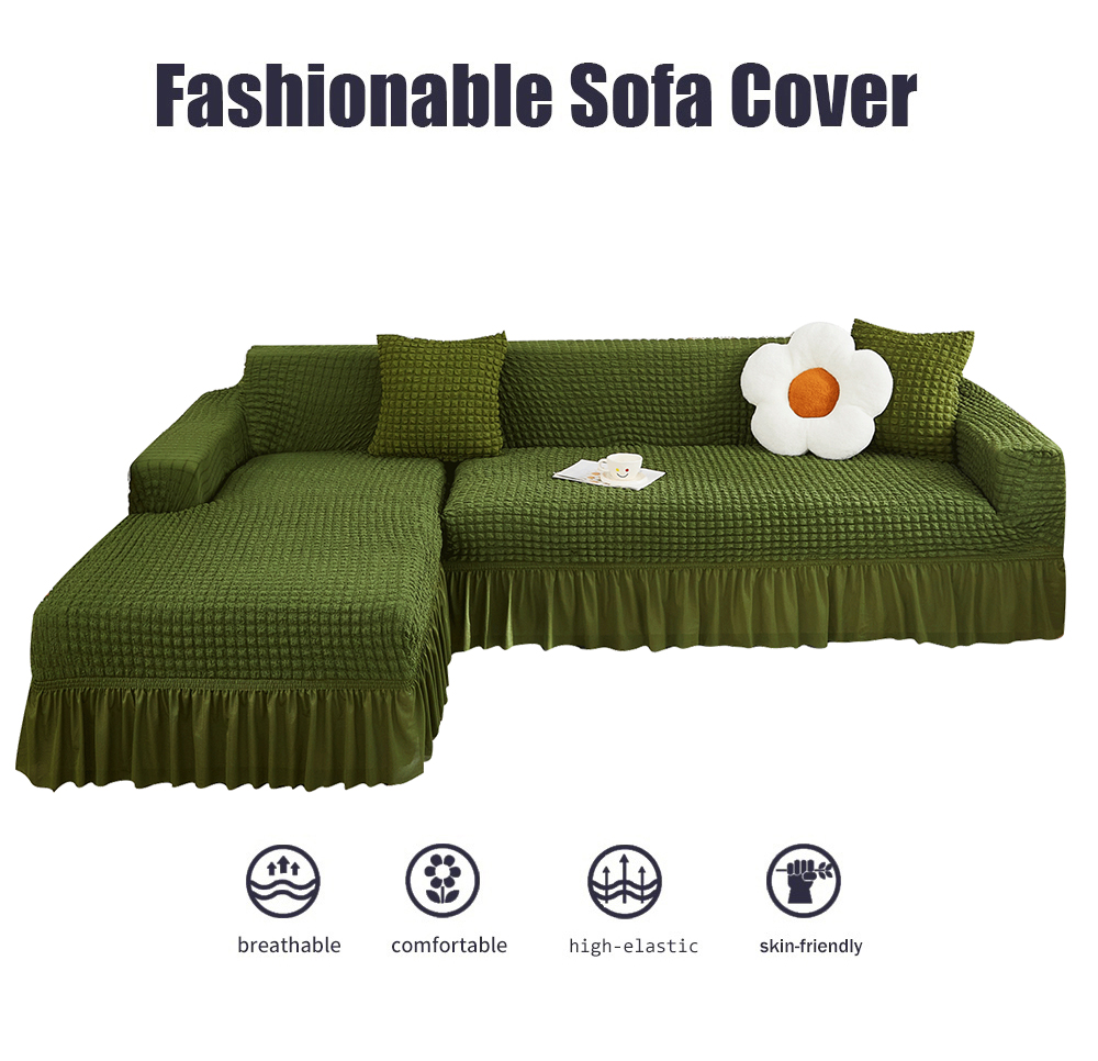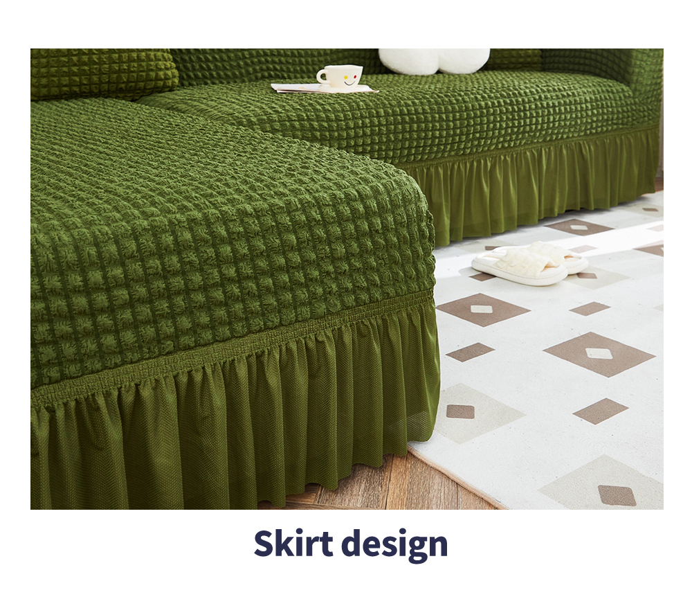 布兰鸟【沙发套】 2025新款泡泡沙发套组合L型【英文裙摆款】 豆沙绿