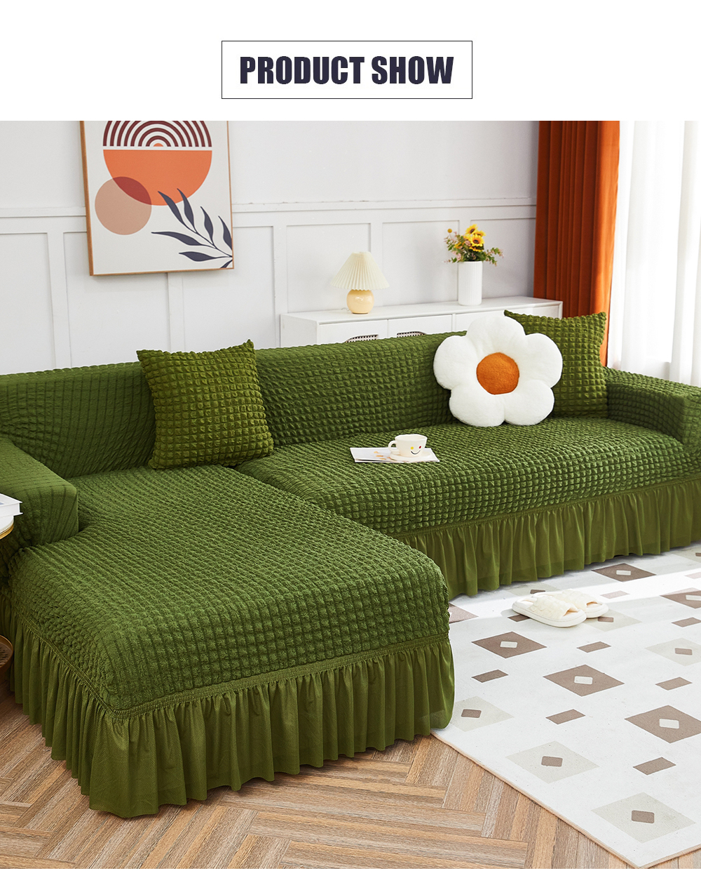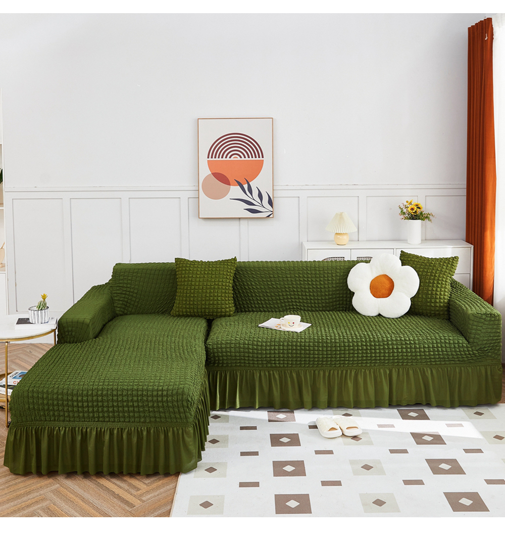 商品名称:布兰鸟【沙发套】 2025新款泡泡沙发套组合L型【英文裙摆款】 豆沙绿