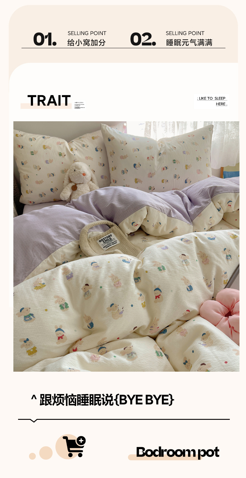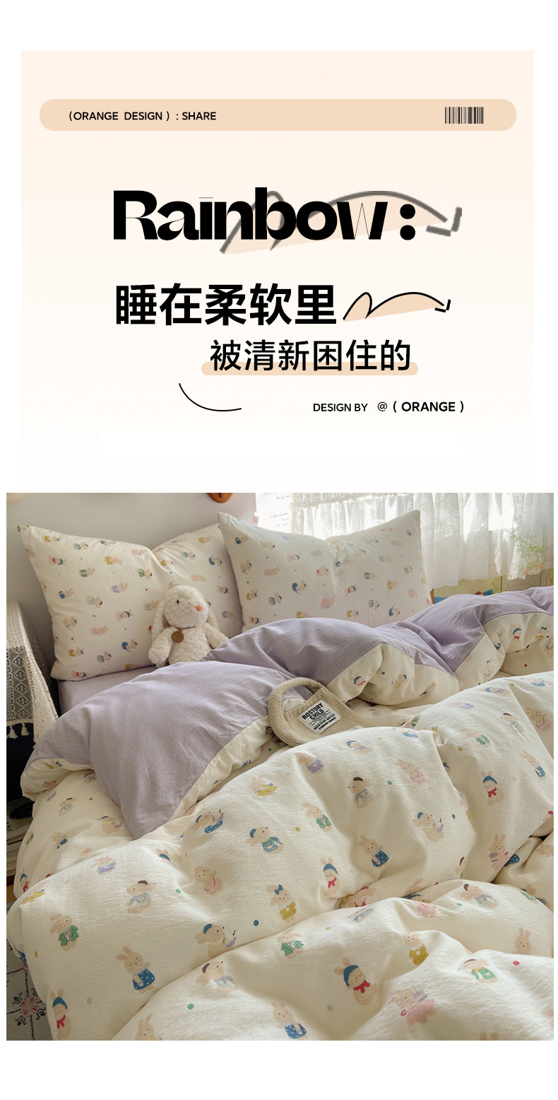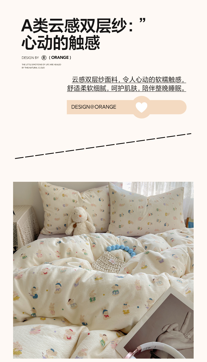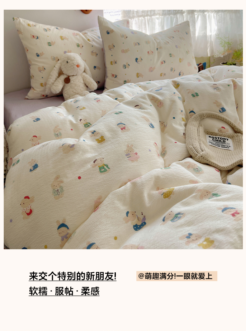 当前位置: 91家纺网 > 商品网购 > 床品套件 > 四件套 > 其它四件套 > 沐芷 2025 木棉双层纱A类四件套直播 开学季宿舍三件套 单被套/四件套--提供买家秀 彼岸-兔子集合