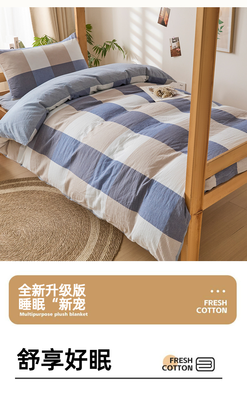 商品名称:爱屋及屋 2025新款水洗棉学生季大礼包学生宿舍六件套棉花被+棉花垫子+枕头+三件套一站式全套 蓝咖大格