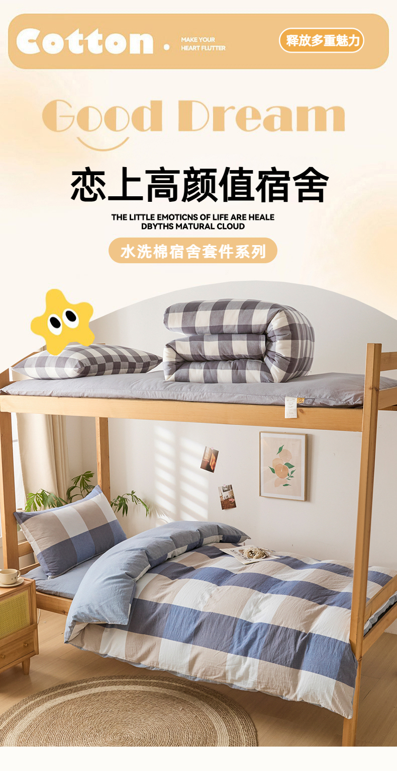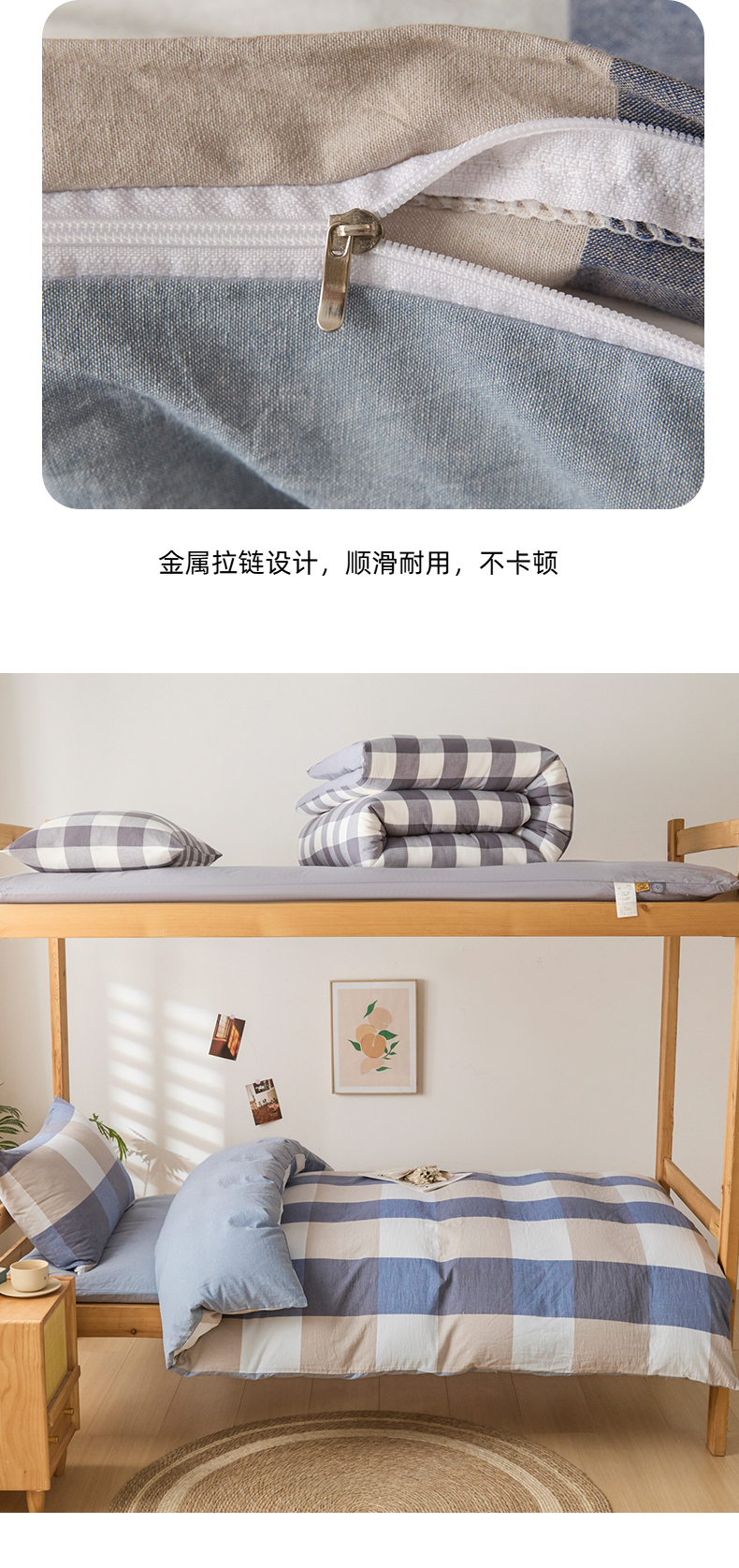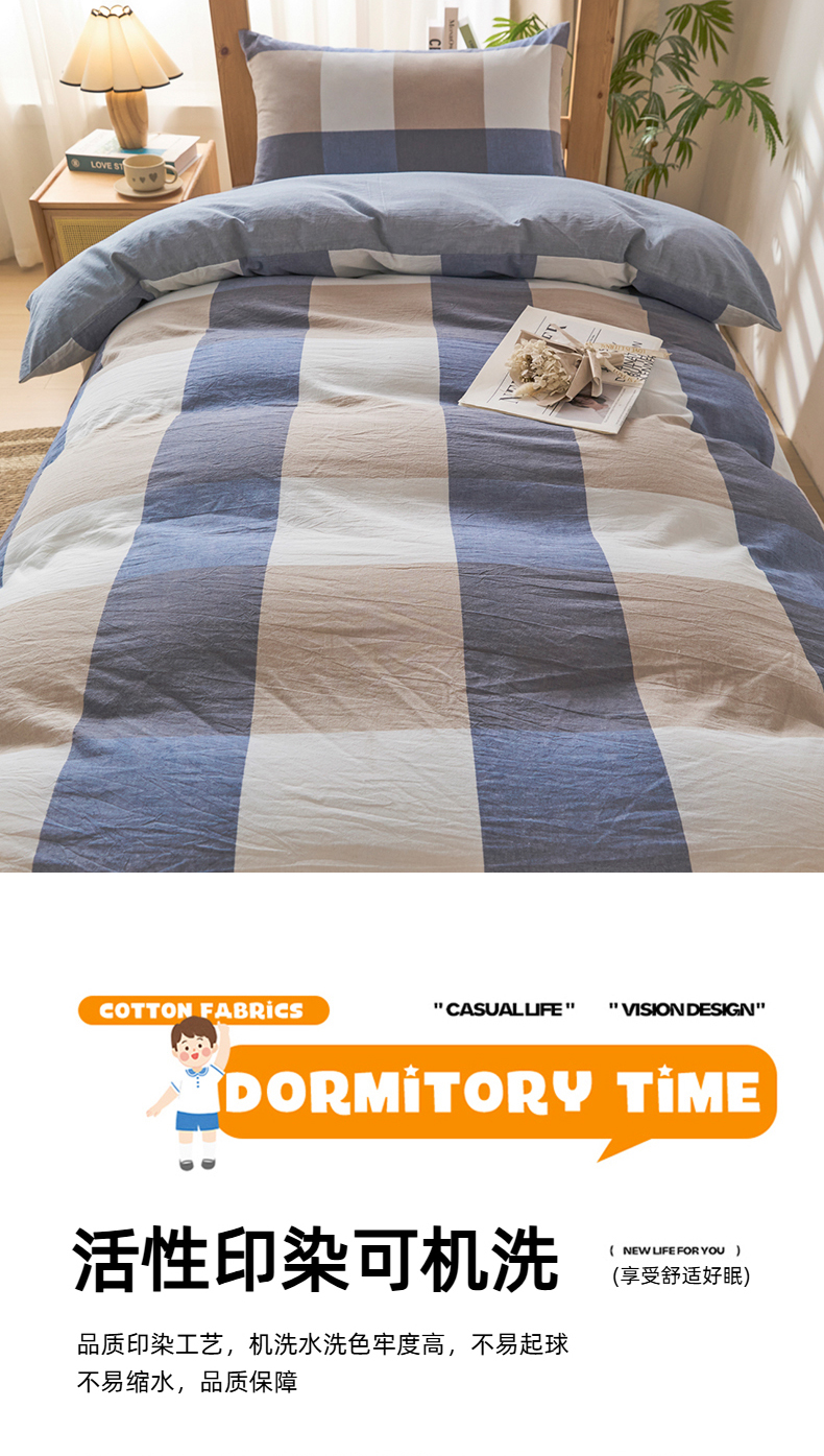 (总)爱屋及屋 2025新款水洗棉学生季大礼包学生宿舍六件套棉花被+棉花垫子+枕头+三件套一站式全套,海蓝大格,格韵蓝,光年灰,灰中格,简析粉,简析蓝,蓝咖大格,蓝小格,蓝中格,清新格,韵绿格,左岸蓝