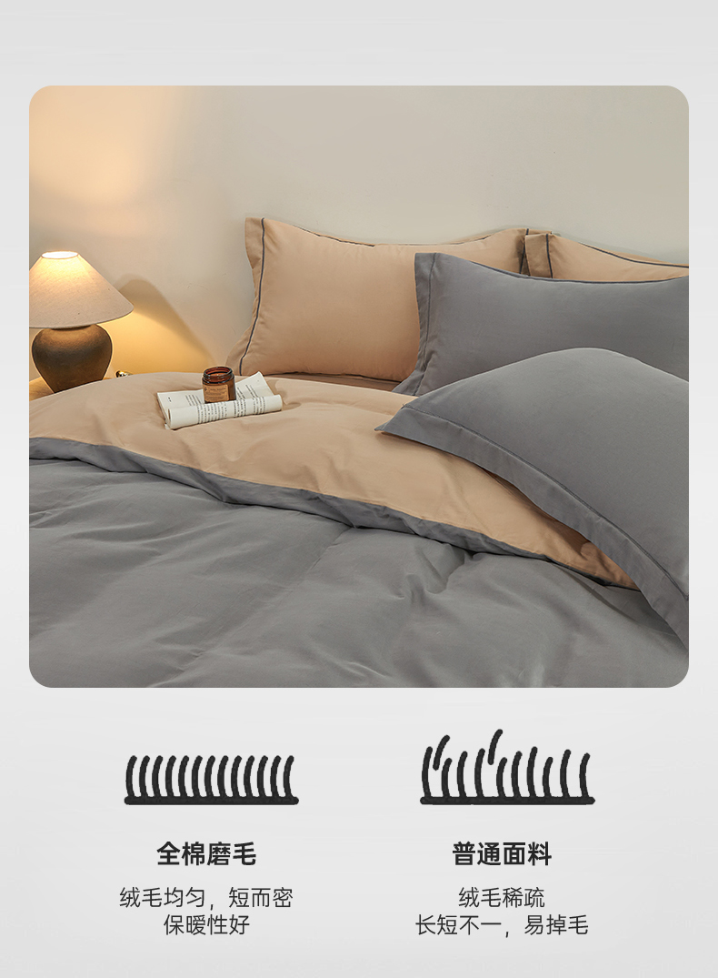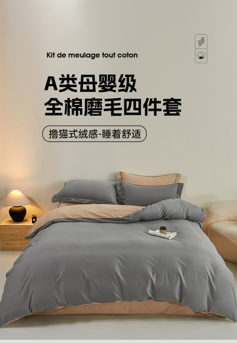 当前位置: 91家纺网 > 商品网购 > 床品套件 > 四件套 > 全棉普通四件套 > 憨豆家纺 2026新款全棉磨毛四件套正宗加厚长绒棉贡缎100%纯棉四件套(含买家秀)莫兰迪 莫兰迪-高级灰拼卡其