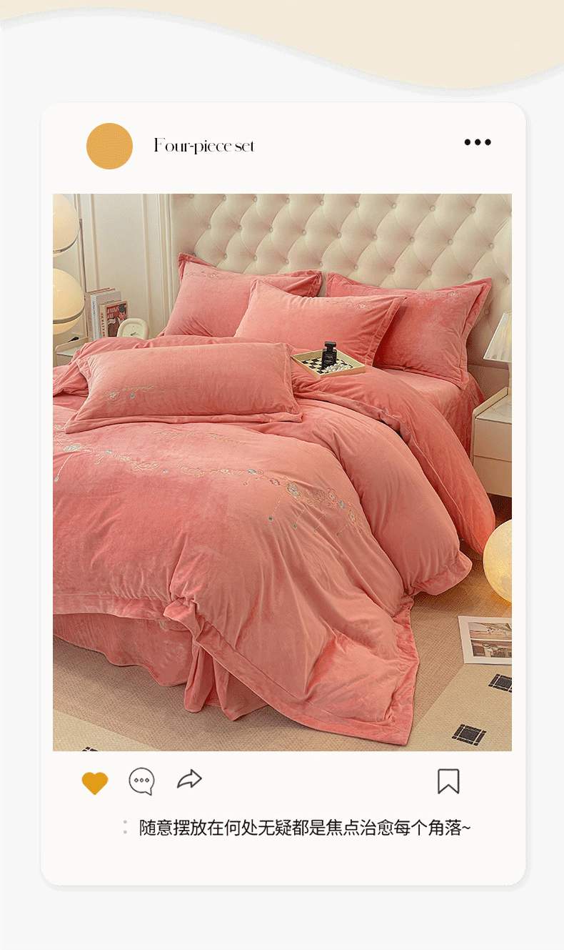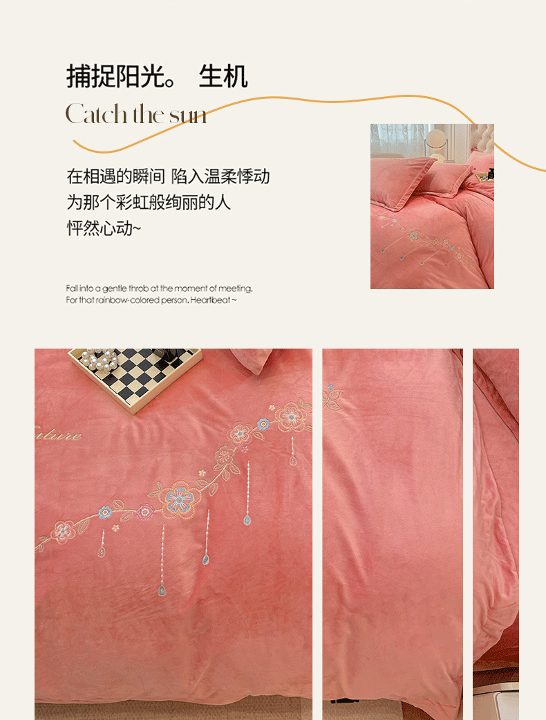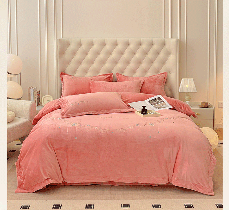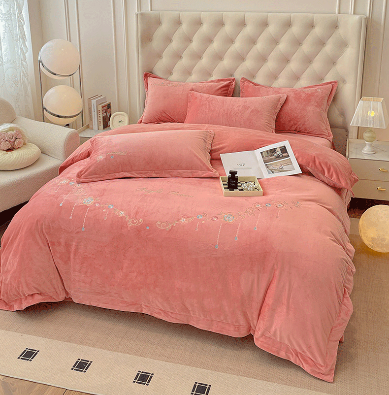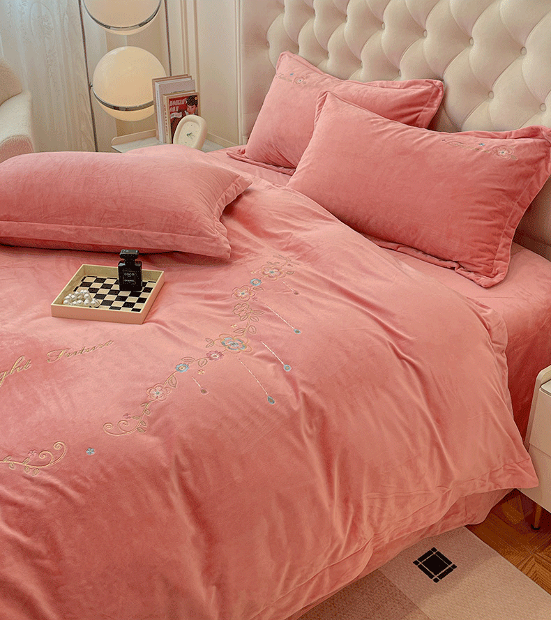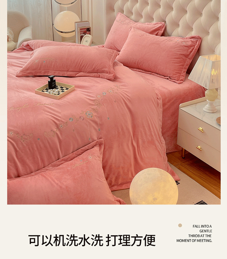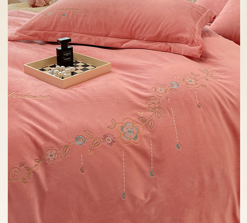 商品名称:艺玲家纺 2025新款婴儿绒高端绣花四件套 心动日记-玉色