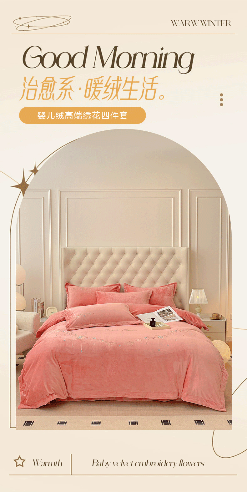 艺玲家纺 2025新款婴儿绒高端绣花四件套 心动日记-玉色