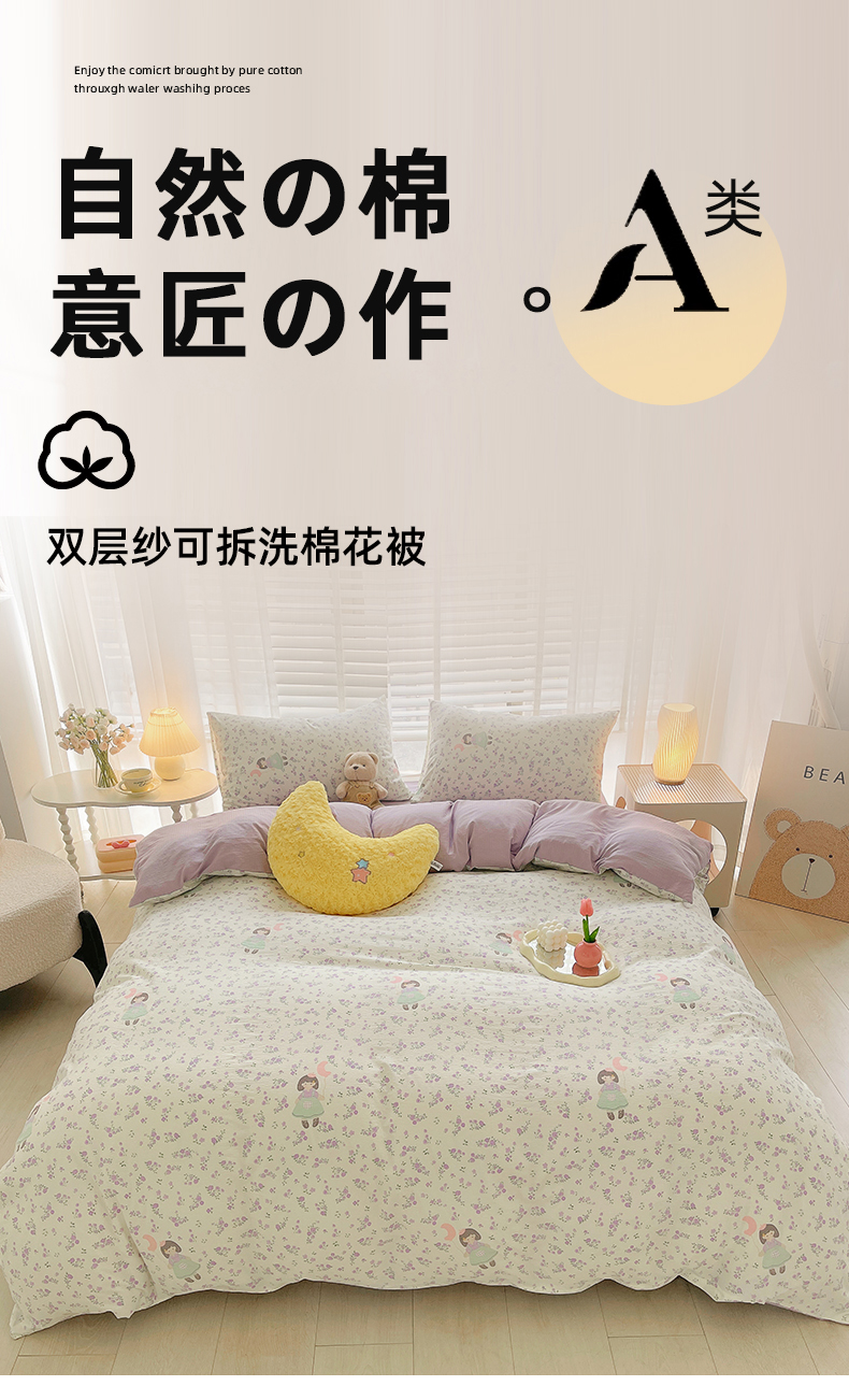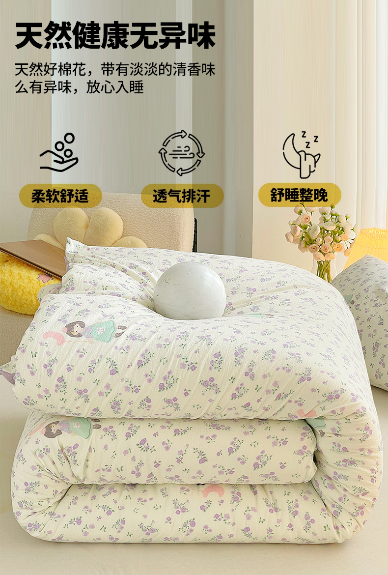 • 91家纺网 家纺一手货源 找家纺 2025新款双层纱可拆洗棉花被 碎花漫游