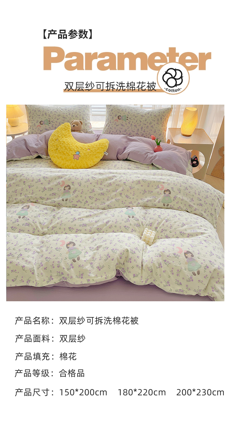 2025新款双层纱可拆洗棉花被 碎花漫游
