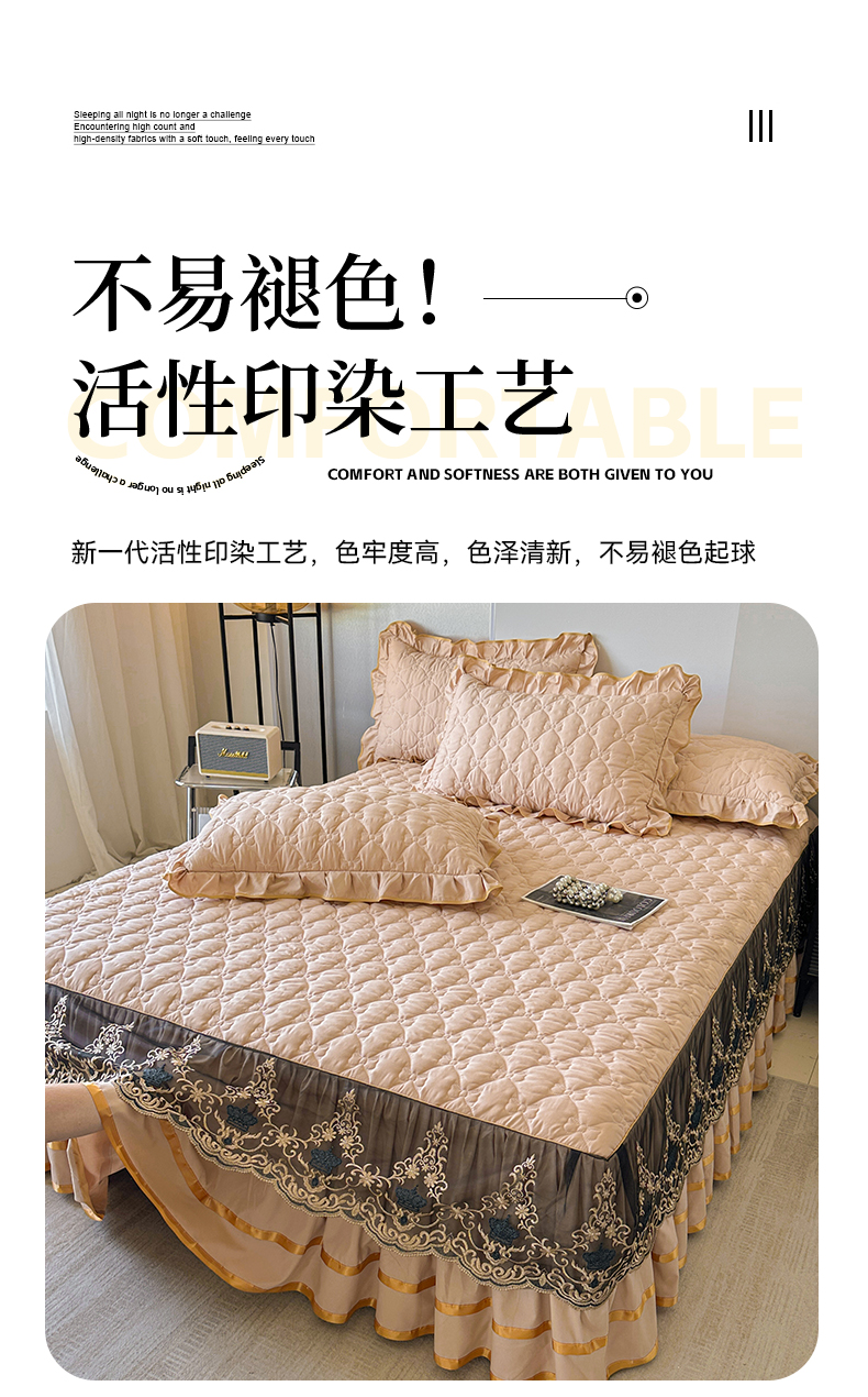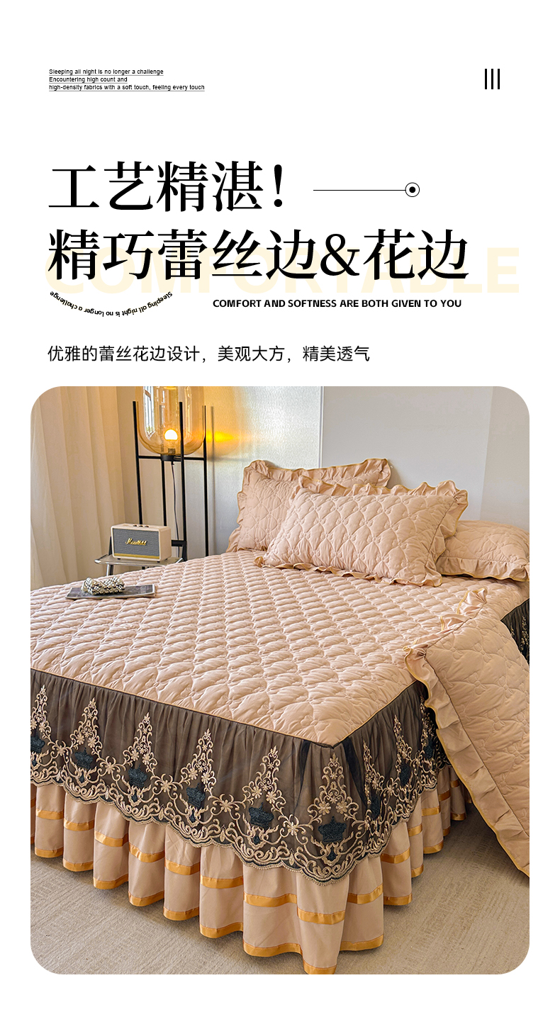 • 91家纺网 家纺一手货源 找家纺 (总)屹成家纺2025新款水晶绒夹棉绗缝蕾丝床裙三件套(塞纳河畔)床裙单件起售价不低于105元,大红,豆沙,翡翠绿,粉玉,橄榄绿,蔚蓝,银灰